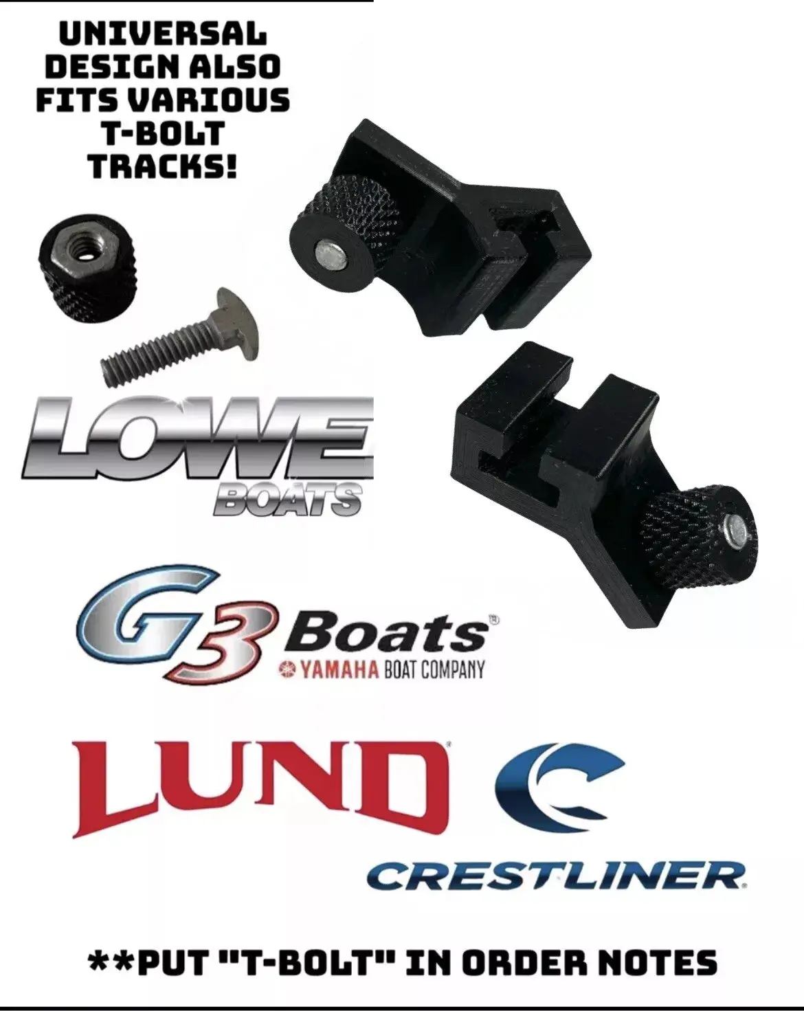 These 45 Degree offset mounts fit nearly all slotted boat rails. By default, these come with round carriage bolts for Tracker boats and any other brand that accepts the full bolt head. For boats such as Lowe, Lund, etc, put "t-bolt" in order notes to ensure that your bolts are correct.