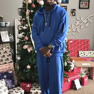 ·Long sleeve pullover hoodie sweatshirt with 2 side pockets, drawstrings, ribbed hem and cuffs, and a zippered pocket on the left arm
