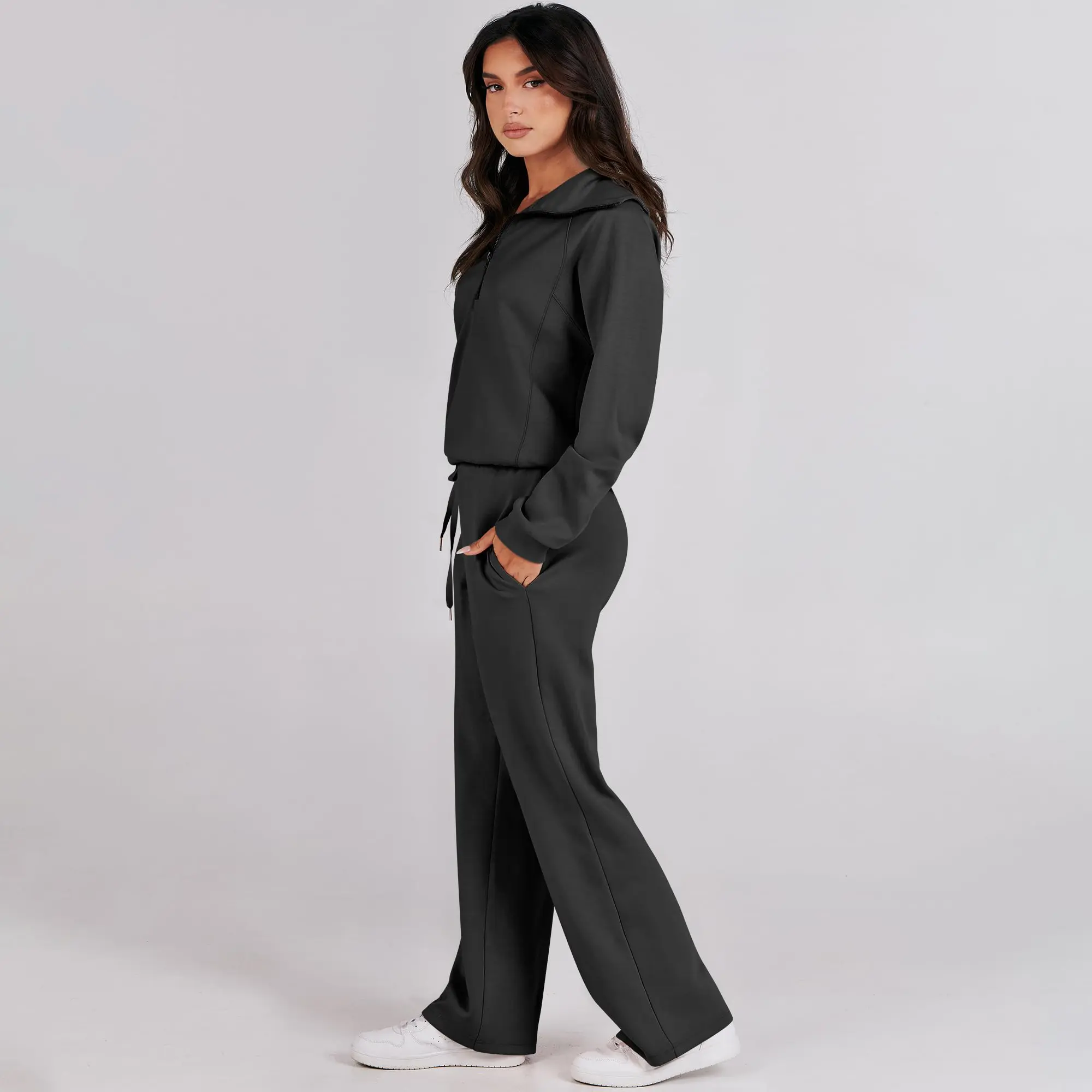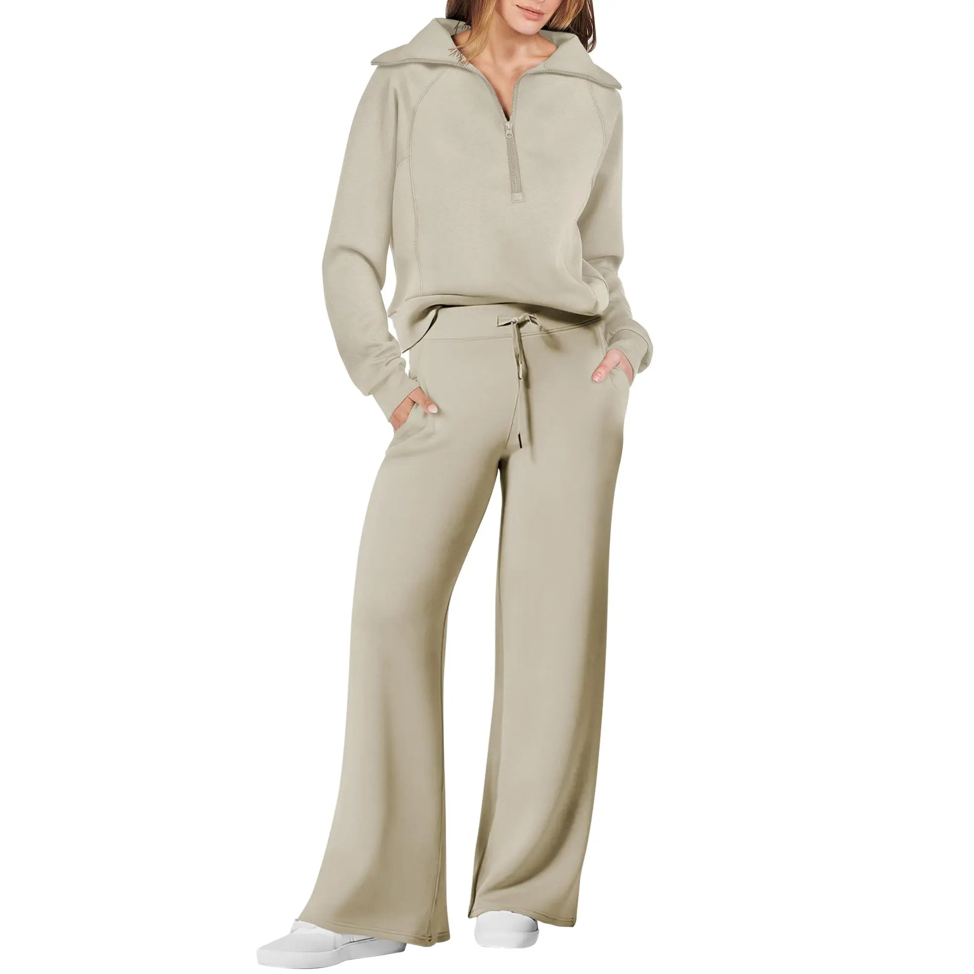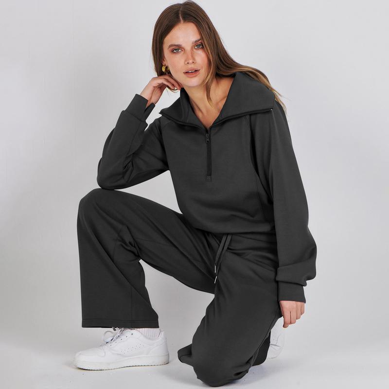 ·Features - This Sweatsuit Set featured half zip long sleeve oversized sweatshirt & high waist drawstring wide leg sweatpant for a 2 piece tracksuit set. Matching set sweatpants 2 piece sweatsuit are great for daily life, gym, sport, running, active, lounge, travel, beach, fitness and home.