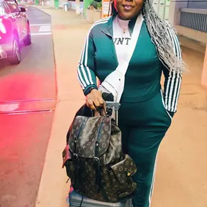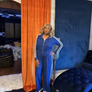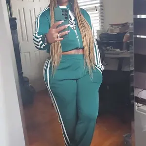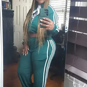 This track suit is too cute. I’ve dressed it up or down. It’s so comfortable and the colors are perfect. They are very easy to clean hair through them in the washing machine and dryer and your done.