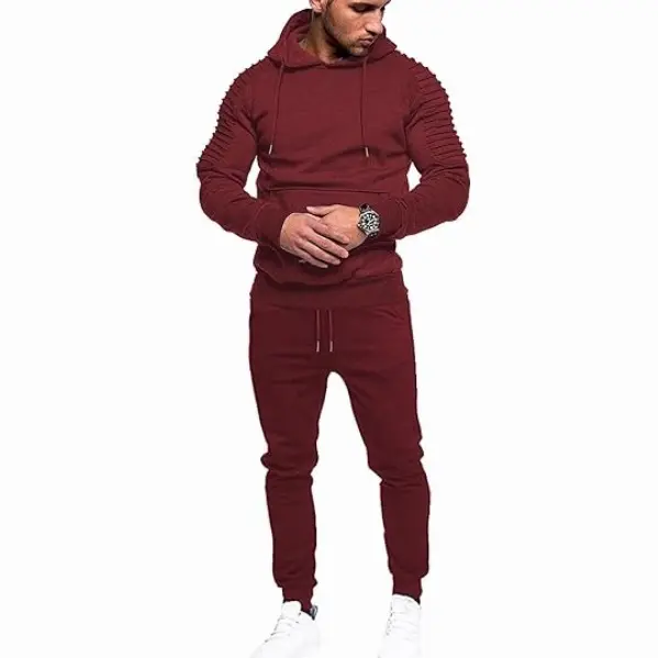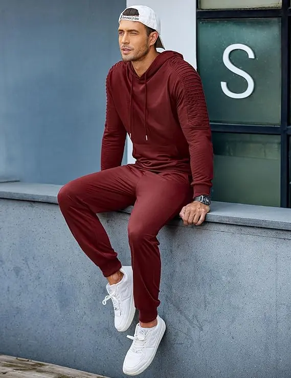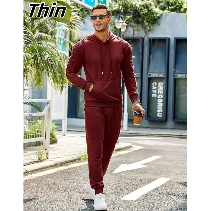 ·【Features1】 Men 2 Piece Tracksuit Set, Hoodie: Pleated long sleeve, solid color, hooded with drawstring, Kangaroo Pocket, slim fit. Elastic ribbed cuffs and stretchy hem provide optimal range of motion when exercising.