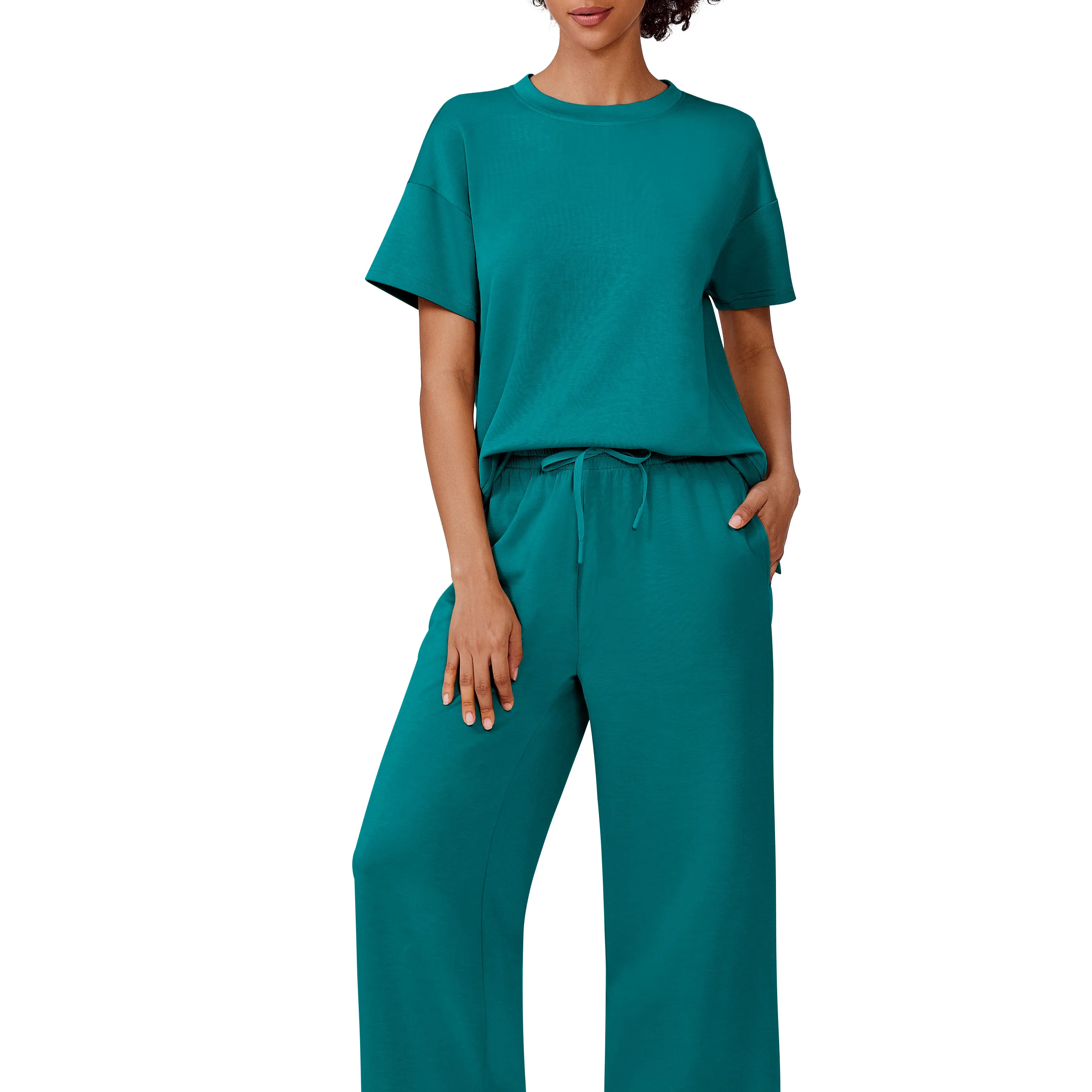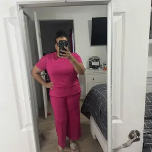 Color is gorgeous. Material is soft and the outfit is comfortable. 5’2” 175 lbs ordered a large and it fit well.