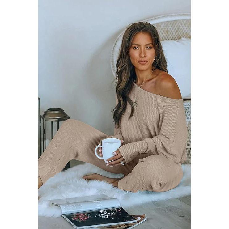 Ā·Trendy & Chic Design ā Features a stylish off-shoulder pullover and elastic waist sweatpants with pockets for a relaxed yet flattering fit.