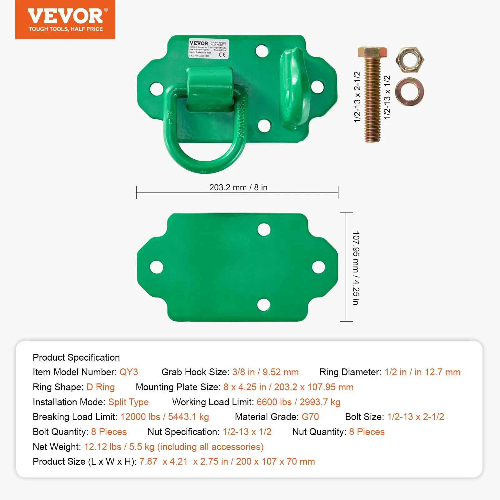 • Easy Installation: The tractor grab hooks are compatible with 3/8" chains and fit most vehicles, including agricultural vehicles, tractor bucket, and off-road vehicles. It can be easily assembled and disassembled, allowing for convenient use without the need for drilling or external tools. The installation process consists of just four simple steps, making it user-friendly and efficient for everyone.