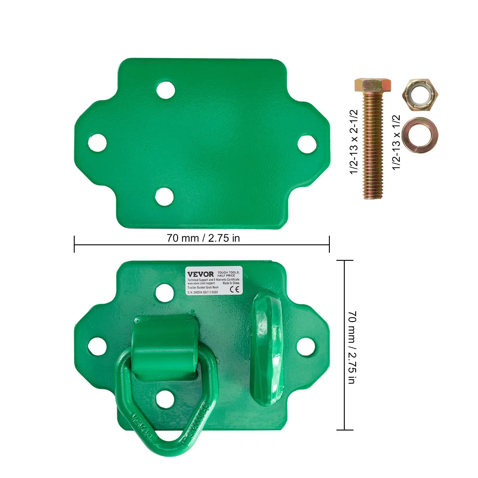 • Durable & Reliable: The tractor hooks feature precise structural connections and secured with a dual-thick base to ensure stability during towing operations. The surface is coated with green powder for enhanced protection, making it rust-resistant and capable of withstanding harsh weather conditions. This robust design extends its lifespan, ensuring long-term reliability in demanding environments.