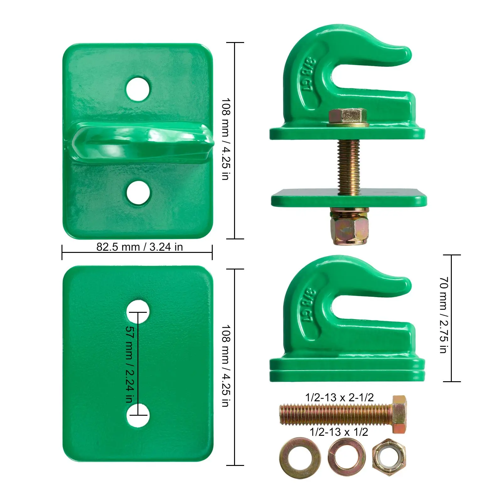 • Easy Installation: The tractor grab hooks are compatible with 3/8" chains and fit most vehicles, including agricultural vehicles, tractor bucket, and off-road vehicles. It can be easily assembled and disassembled, allowing for convenient use without the need for drilling or external tools. The installation process consists of just four simple steps, making it user-friendly and efficient for everyone.