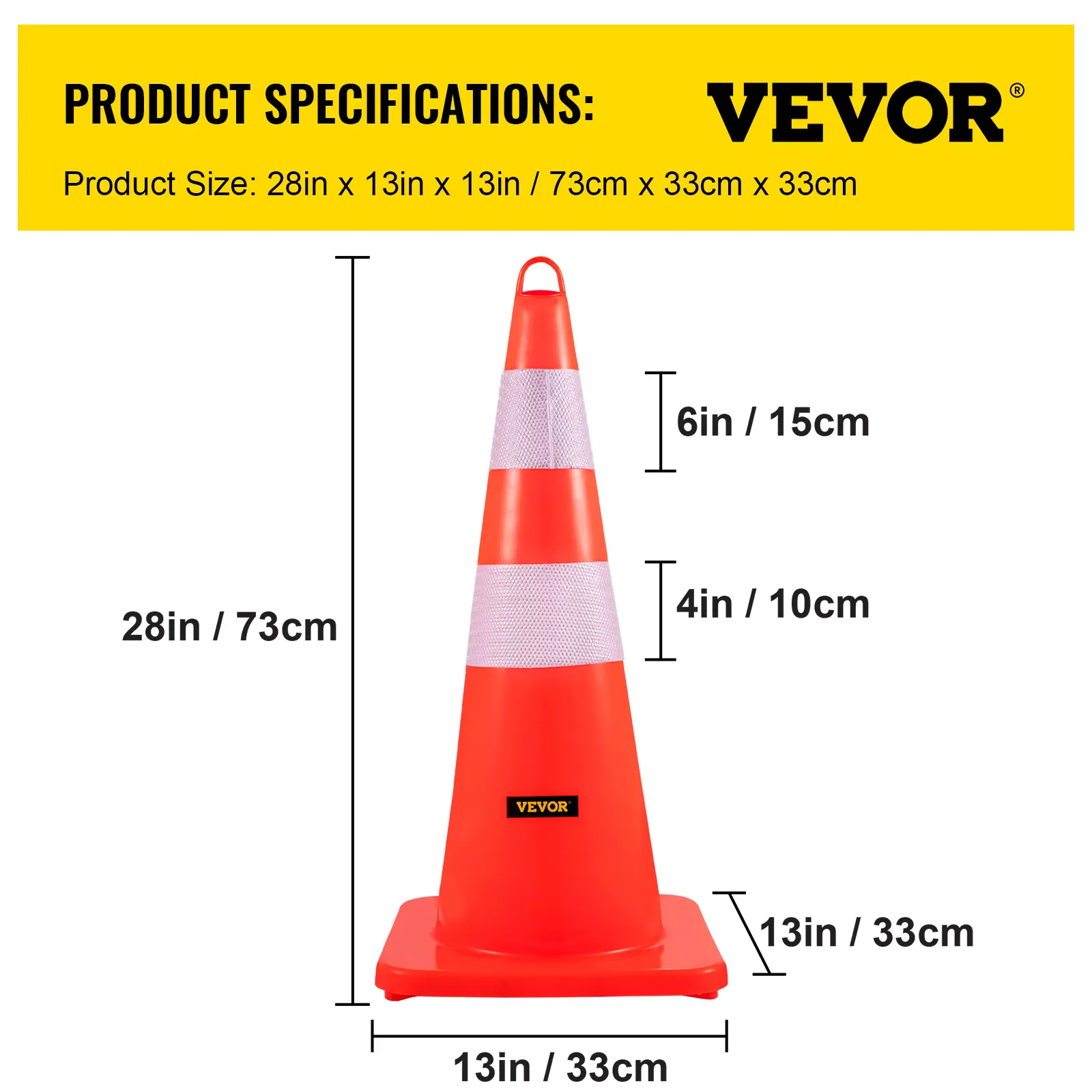 • Large Weighted Base: The large 13" x 13" black weighted base is equipped in our construction cones aimed to provide more stable obstacles. As a result, those safety cones are not easily be toppled over and blown down by heavy wind but are suitable for all kinds of obstacles and roadblocks.
