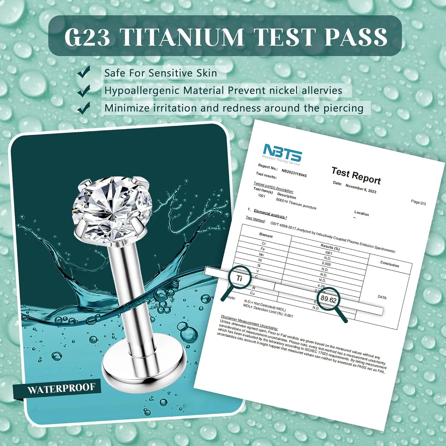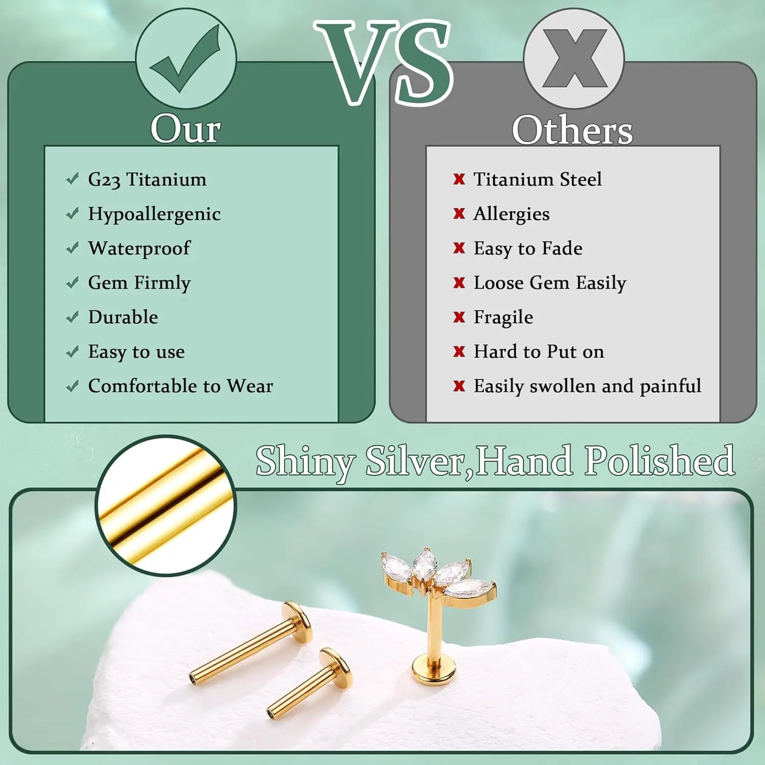 ·Piercing Jewerlry Material --Made of G23 pure Titanium, the tragus piercing jewelry set has passed The Anti-allergy Test, Titanium Content Test,Usage Time Test,Waterproof Test,etc. paired with dazzling cubic zirconia, nickel and lead-free. Crafted with a highly polished surface and advanced electroplating technology, our cartilage earrings are lightweight and comfortable to wear