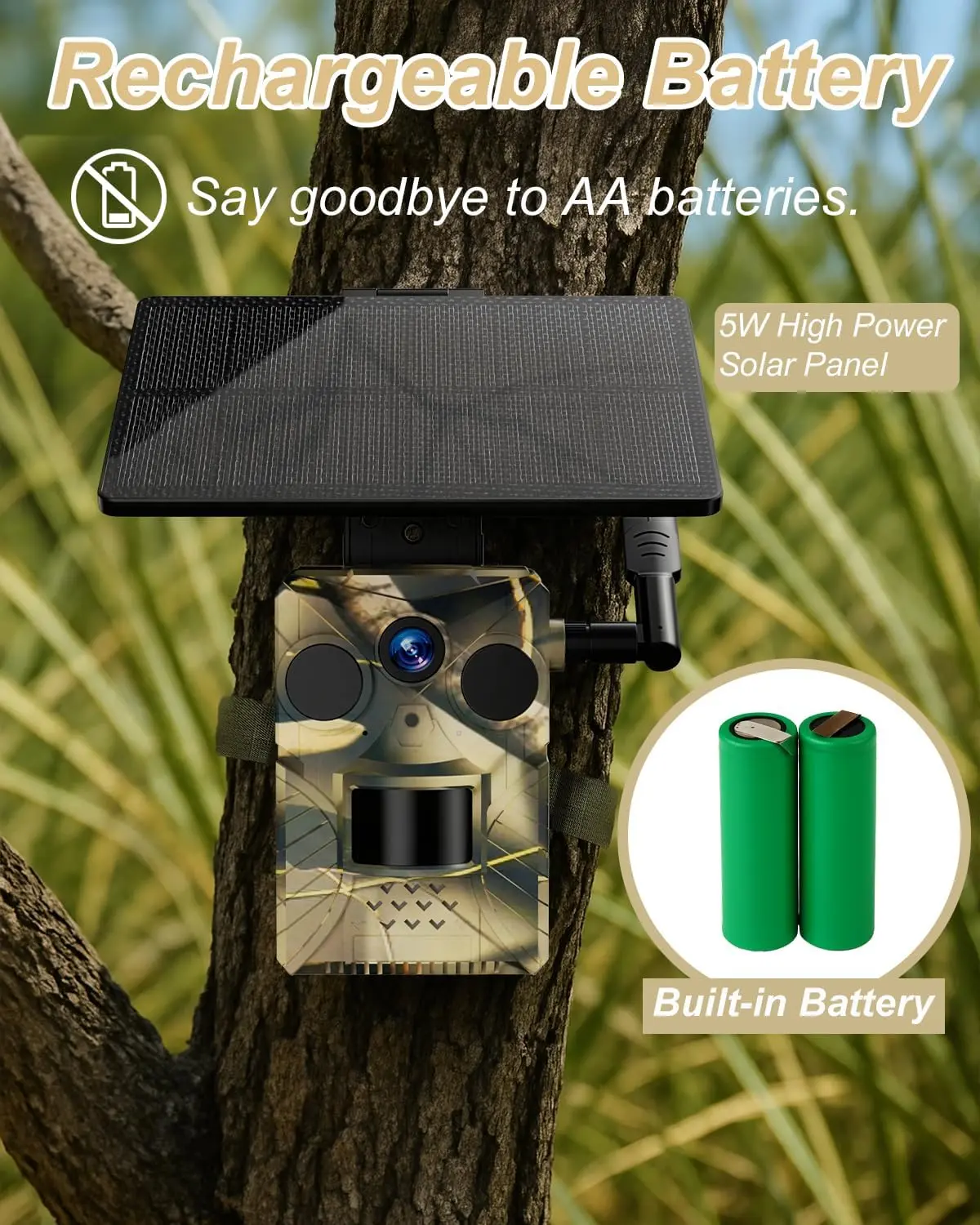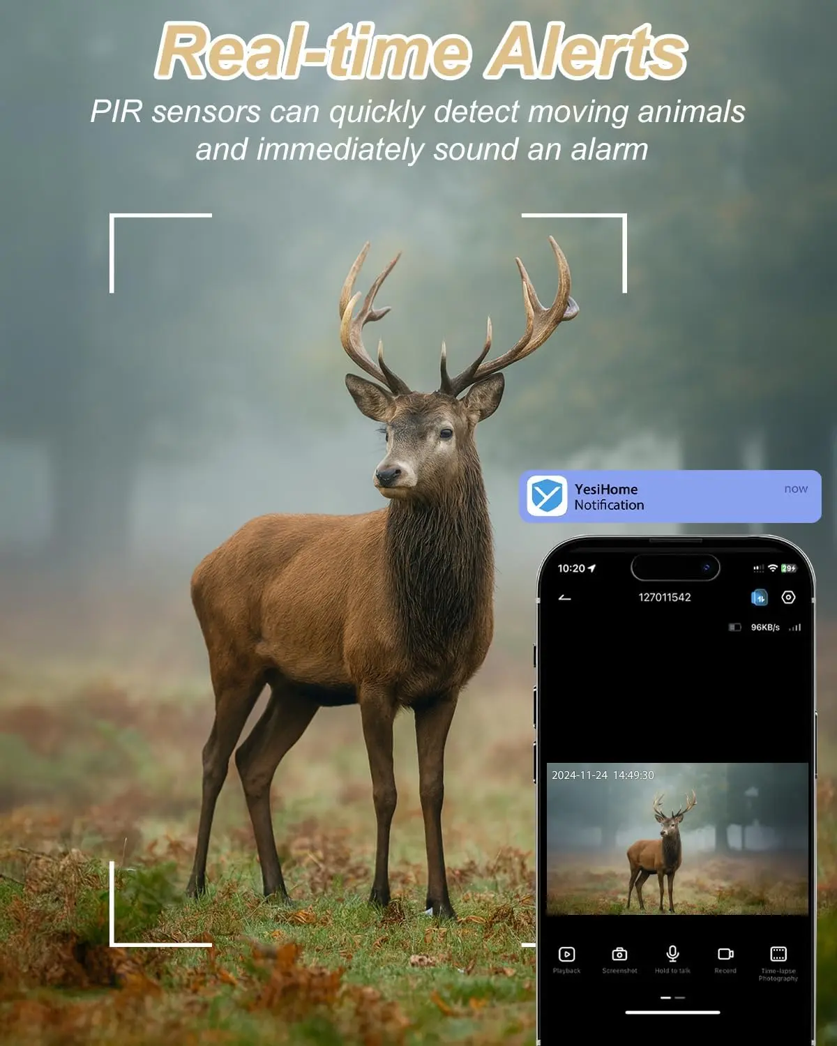 Equipped with a 9000mA battery, 4G connectivity, and solar power support, this camera is completely wireless, eliminating the need for complicated wiring.The camera features PIR motion sensing and AI-powered detection, with a detection range of up to 18 meters, delivering instant alerts for enhanced security.