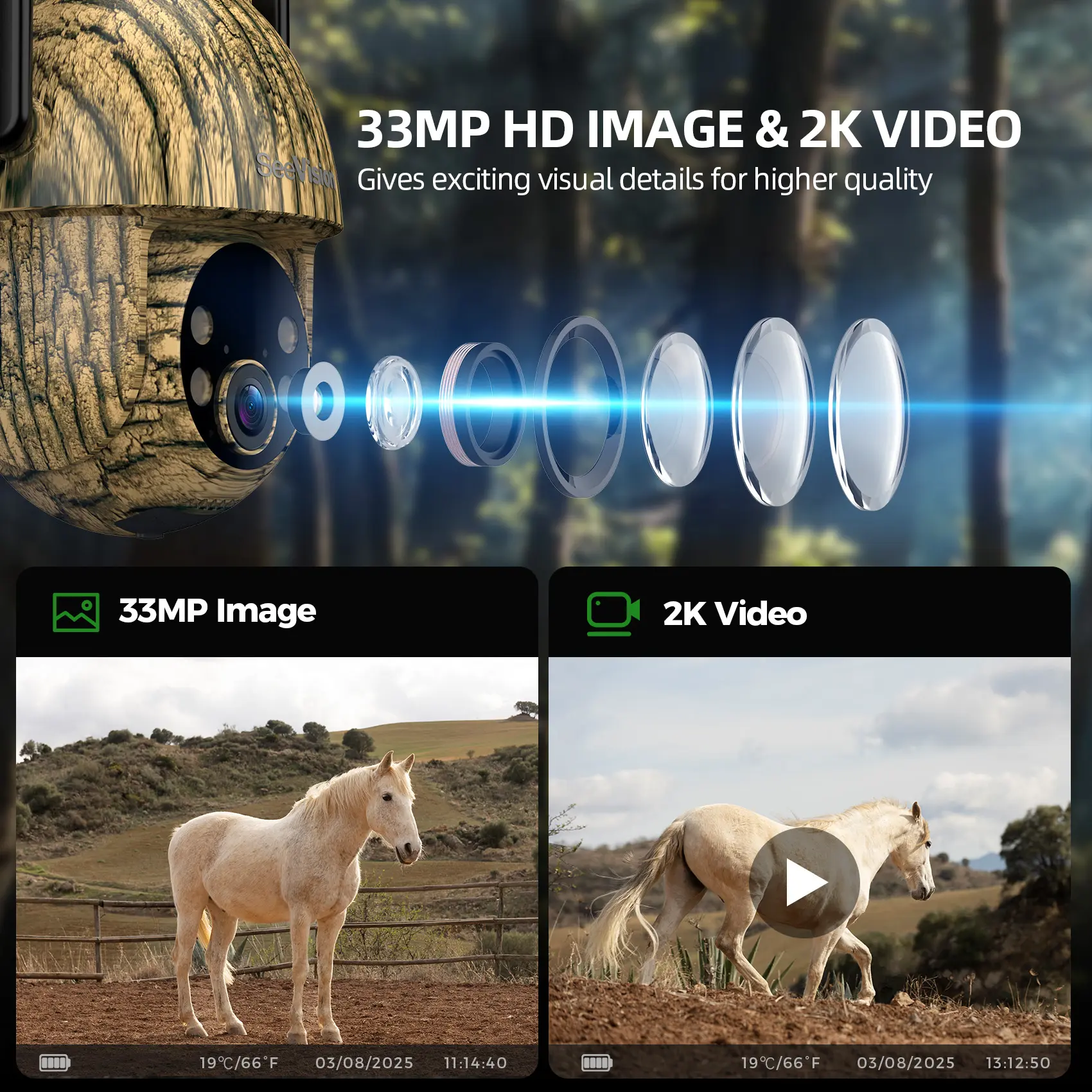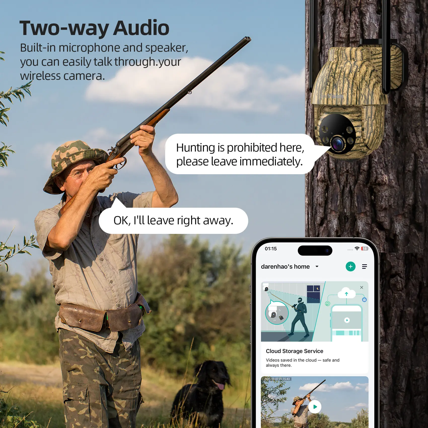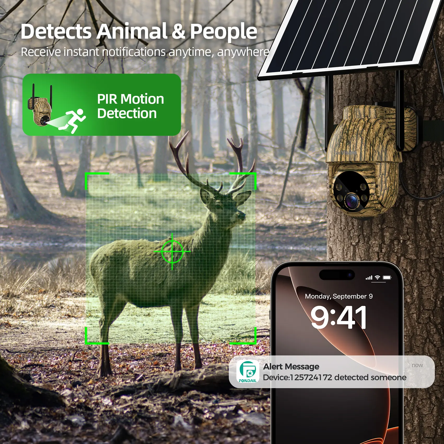 ·Smart Detection & Real-Time Notification: Advanced PIR smart sensors detect both animals and people, sending real-time notifications to your phone. Video can be viewed anytime using a memory card (up to 128 GB) or cloud service (free trial for 1 month).