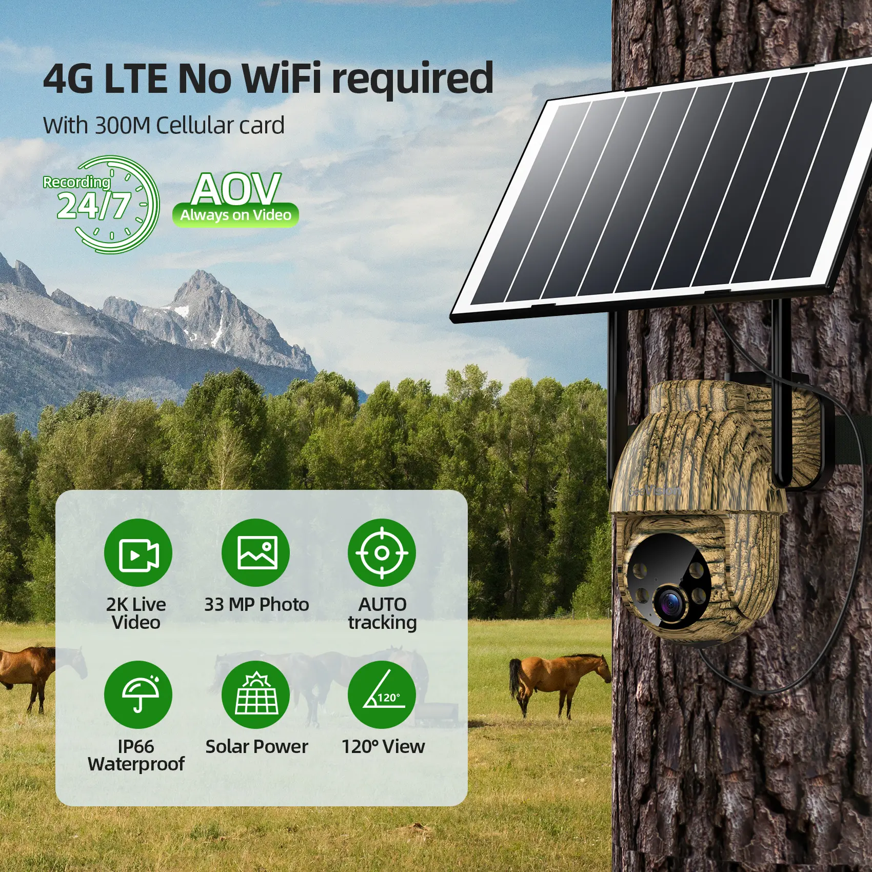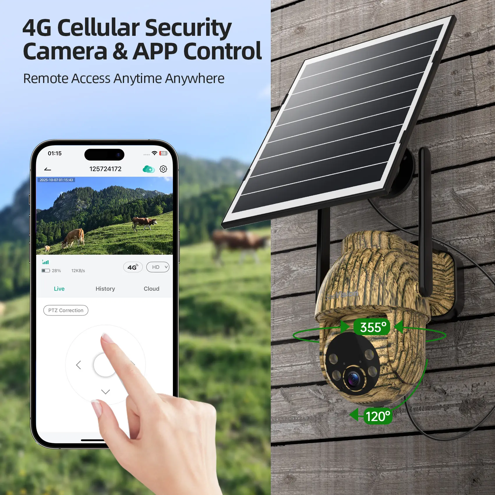 ·360° Live View & Two-Way Talk: Cellular security camera with 355° pan, 100° tilt, and 4X digital zoom for wide-area coverage and real-time activity notifications. Ideal for viewing deer, squirrels, goats, horses, cows, wild pigs, and more. Two-way talk function for warding off unwelcome guests and animals.