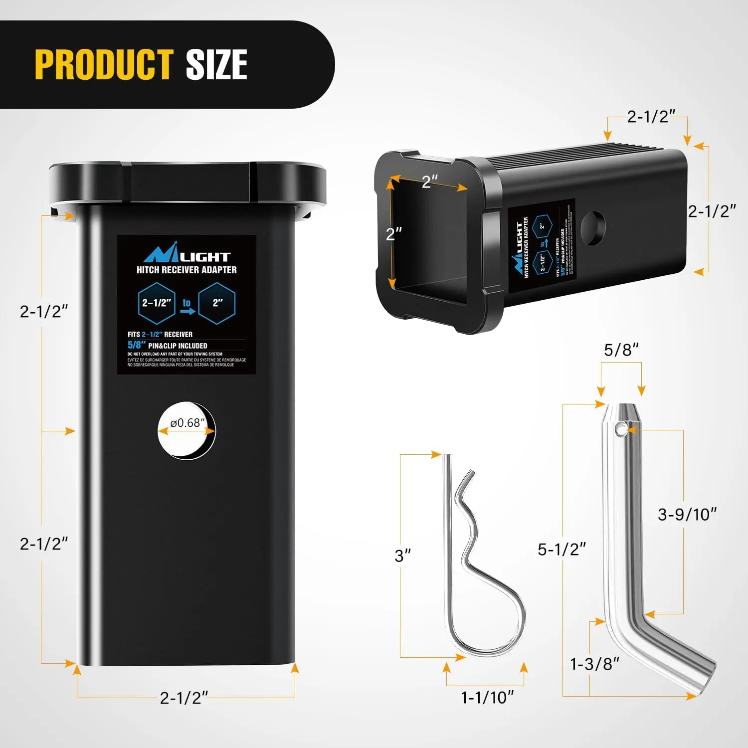 ·Package Included: 2-1/2" to 2" Hitch Adapter & 5/8 Hitch Pin and Clip