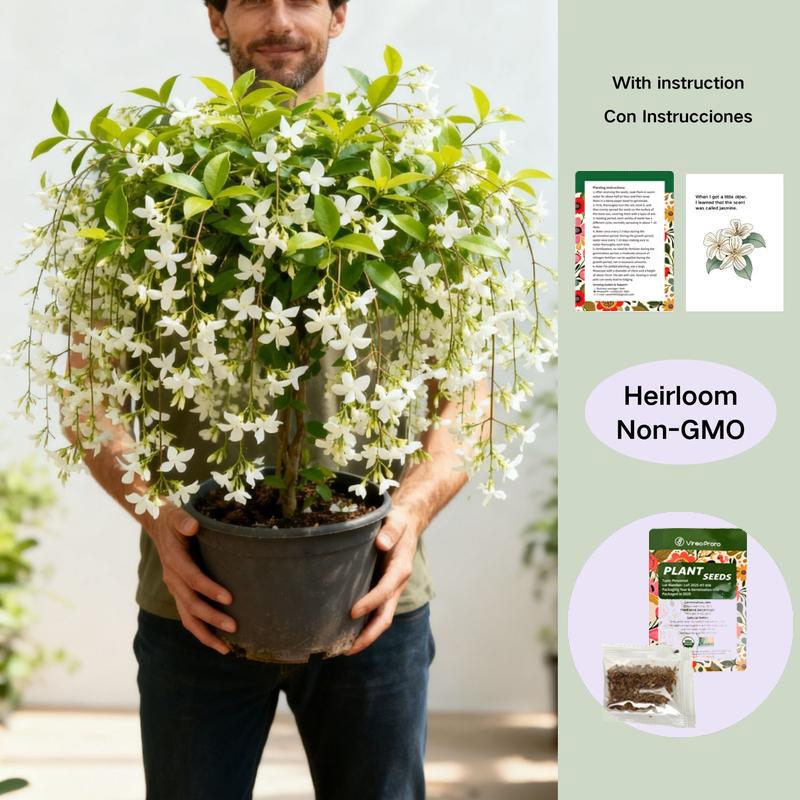 Transform your space with jasmine elegance! Our cascading jasmine seeds thrive on walls, trellises, and balconies. This aromatic plant symbolizes elegance and calm, filling your space with a luxurious scent. Perfect for bedrooms or outdoor areas, it's a versatile addition to your home. Start your garden journey today!
