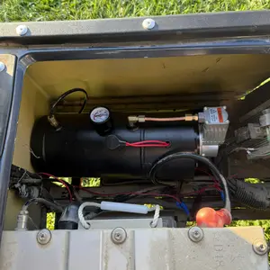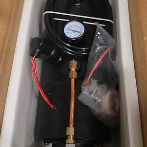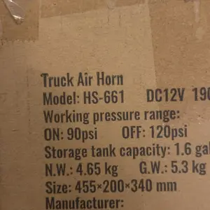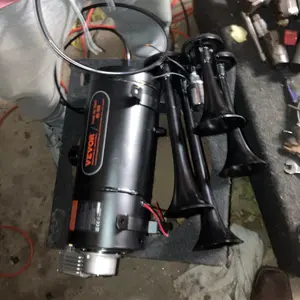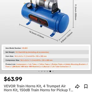 This 4 trumpet air horn kit includes four horns, a solenoid valve, a 0.8-gallon air tank, a compressor, and air pipes. It features an auto-inflating compressor for quick horn response. Made with rust-proof materials. Ensuring safety in any weather and effectively alerting others on the road.