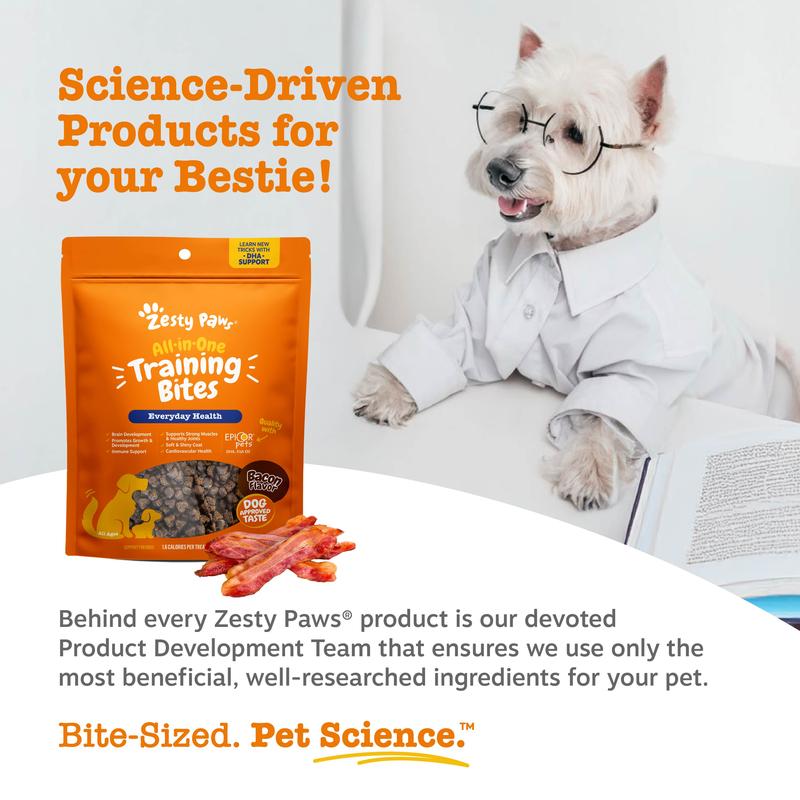 Ollie LOVES the Peanut Butter flavored Zesty Paws Training Bites. He learned several tricks in a matter of minutes with these tasty treats. They are definitely taste approved by Ollie!