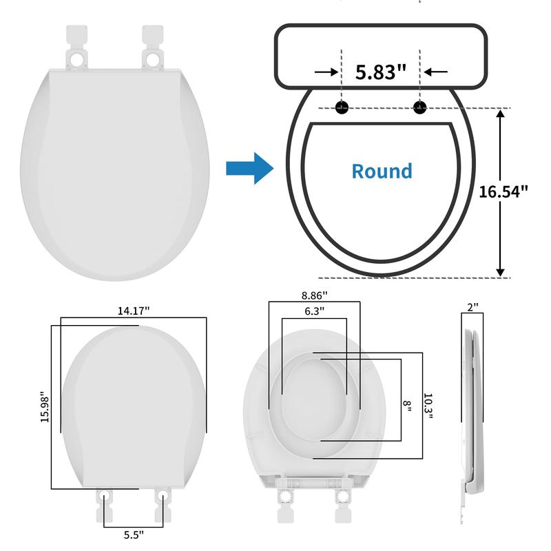 ·[Safe Material and Long-lasting Structure] Its sturdy construction allows it to support 400 pounds and more. The toilet seat is made of high polypropylene plastic that is completely pure (not recycled), non-absorbent, chemically and stain-resistant.