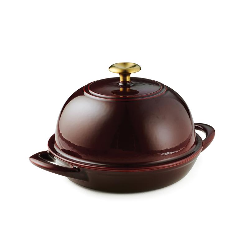 Experience the joy and authenticity of brick-oven style bread baking right in your kitchen with the Tramontina 9.5 Inch Cast Iron Bread Oven. Designed to expertly absorb and retain heat, this bread oven ensures your dough is baked evenly and efficiently. The off-white porcelain enamel interior not only simplifies cleaning but also maintains the integrity of your bread's flavor and texture. The tight-sealing lid helps trap steam, simulating the conditions of professional bread ovens to give your loaves a beautiful rise and a delightfully crisp crust. Featuring a gold stainless steel knob for a secure grip, even when wearing oven mitts, this bread oven blends functionality with style. Whether you're a seasoned baker or a beginner, this cast iron oven will make a valuable addition to your culinary tools, enabling you to produce artisan-quality bread at home. Perfect for those who appreciate the art of baking, it's a must-have for creating delicious, heartwarming breads for you and your loved ones.