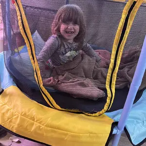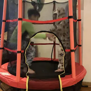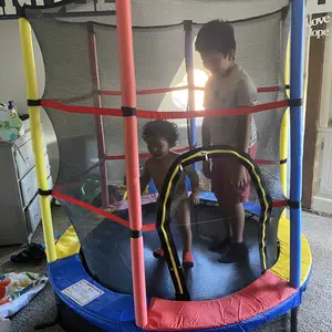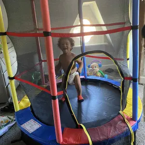 Great trampoline! My husband built it in about 30 minutes, carefully checking everything for safety. It’s sturdy, has strong suction cups, and fits perfectly in the kids’ room. The bar helps with balance, and they jump and play for an hour. We love the bright colors!
