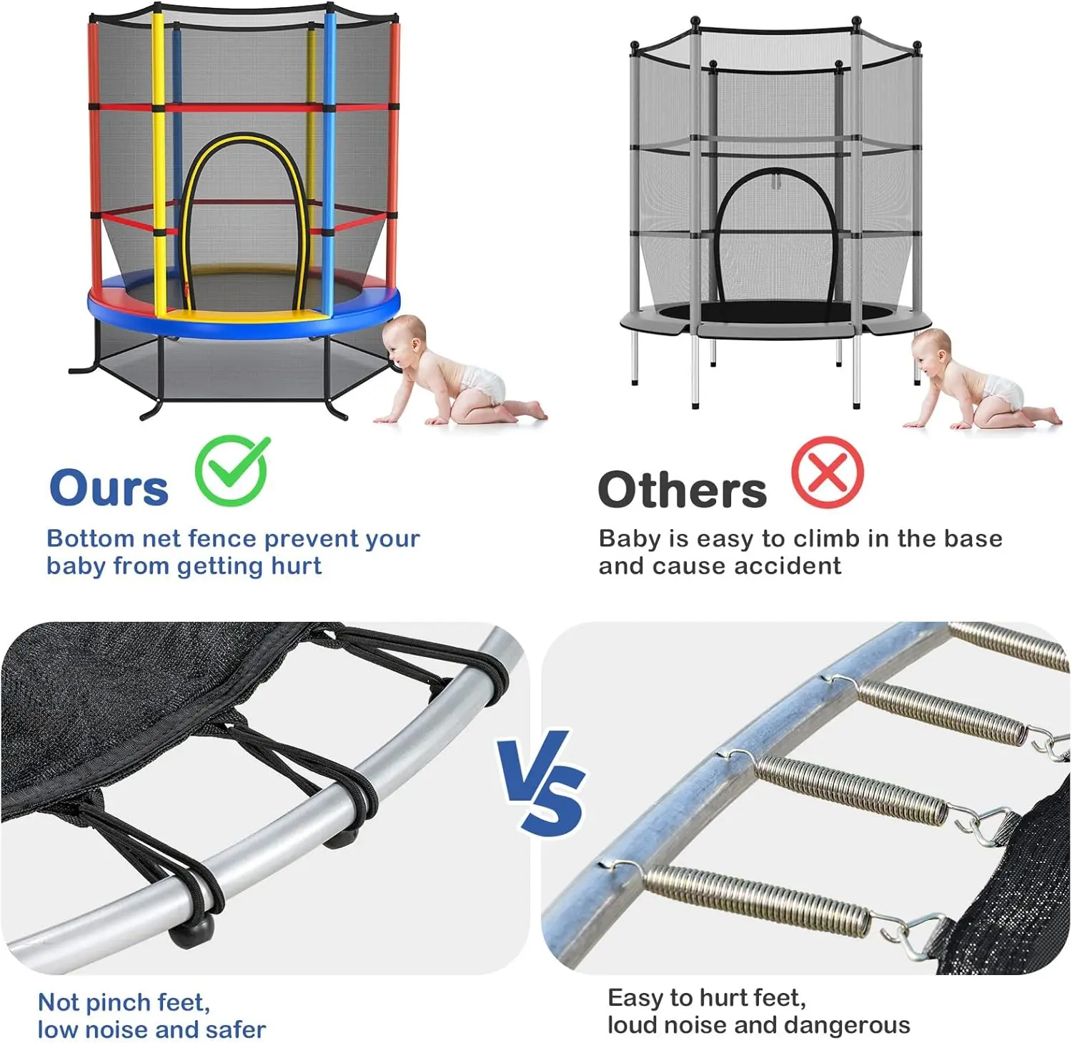 I combined two trampolines to get the one that works best for me. Costzon's had the right height for my above average height toddler. It did not offer the additional items one of the others did. The netting needs more flexibility to attach to poles. 1 of velcro attachments I wasn't able secure.
