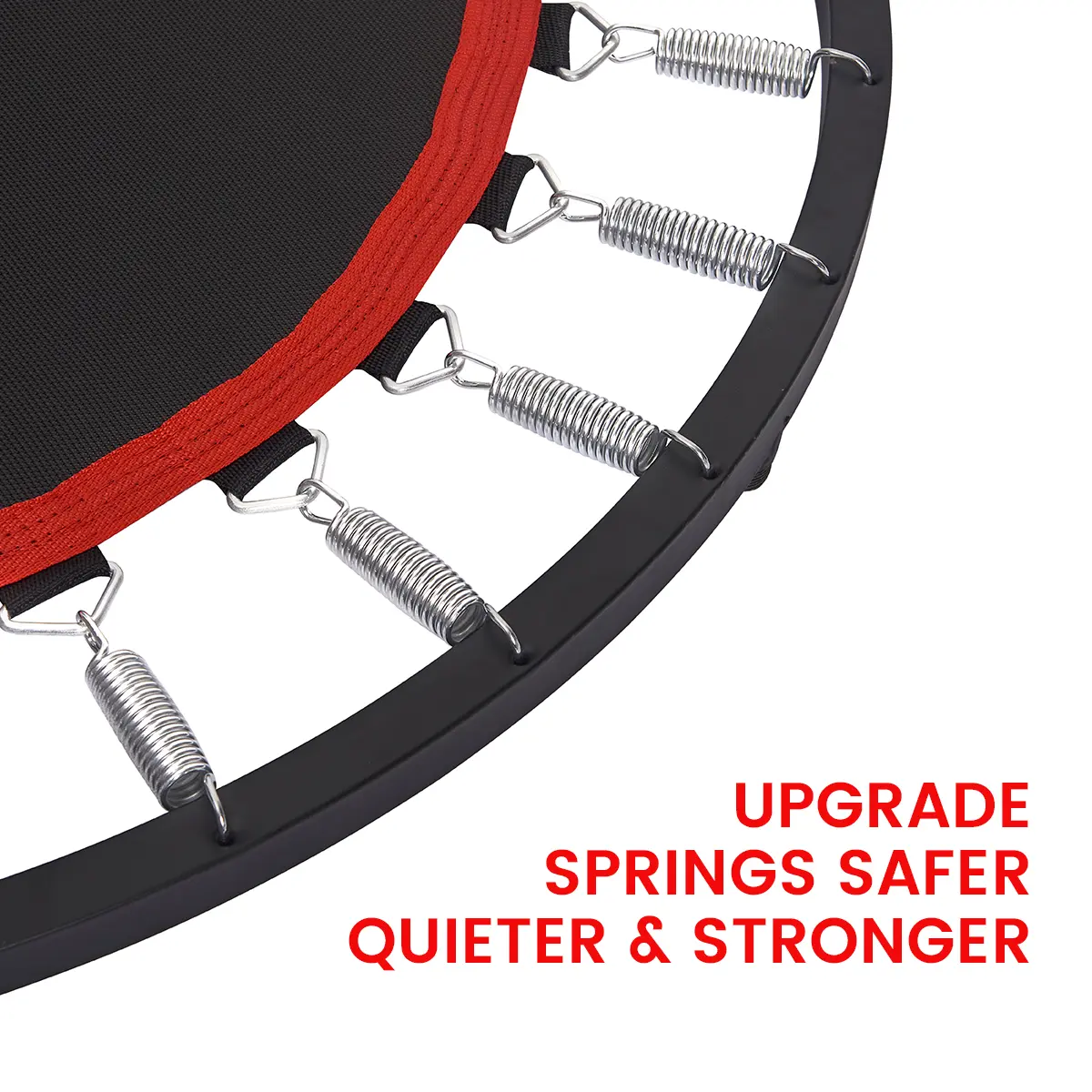 【Steel Springs】The 28 closed thick steel springs offer a powerful elastic recovery system that is perfect for over 6-year old trampoline exercises.