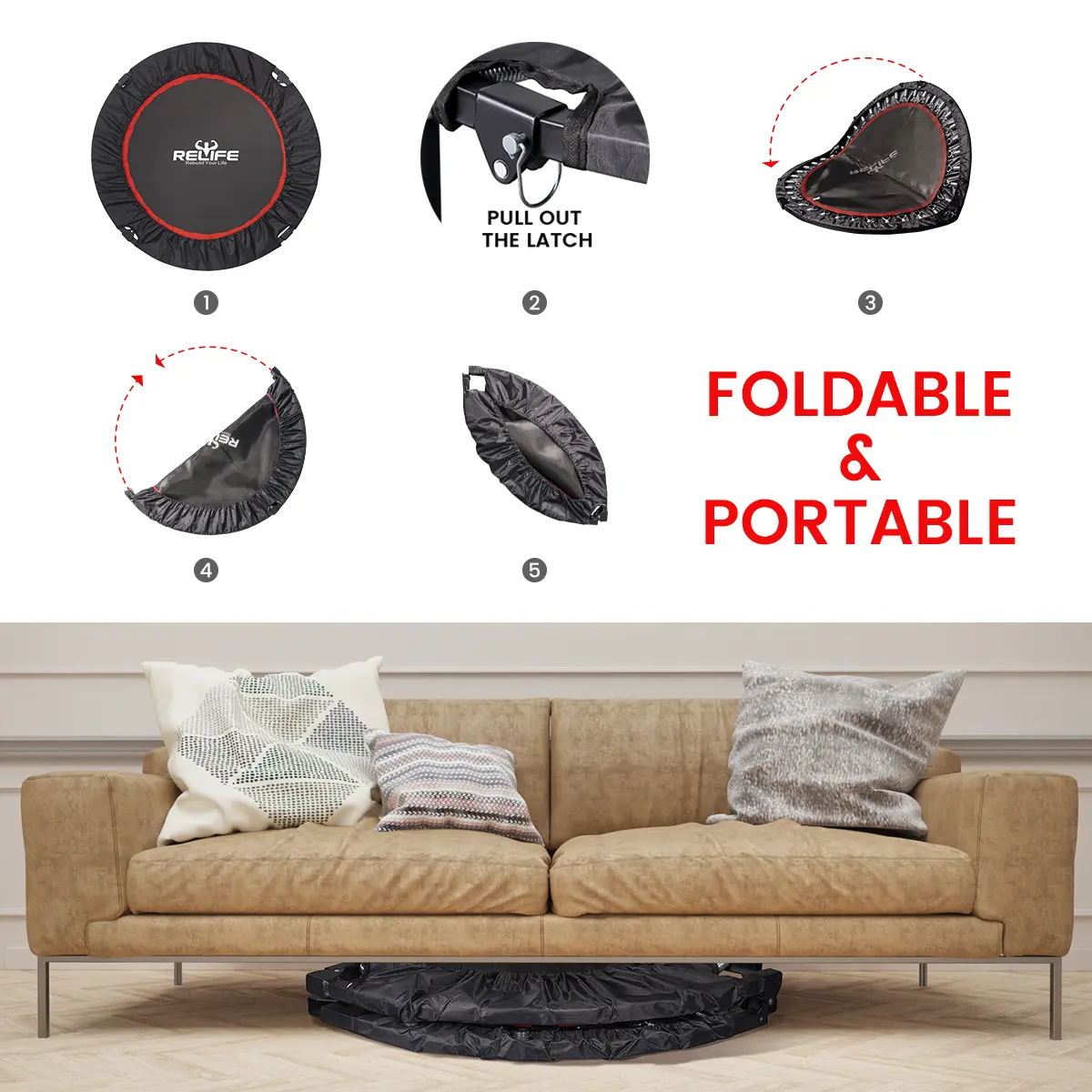 5. RELIFE SPORTS 48 Inch Mini Jump Trampoline | 330LBS Max Load with Safety Handle | Adult Rebounder for Indoor/Garden Workout/Exercise Trampoline