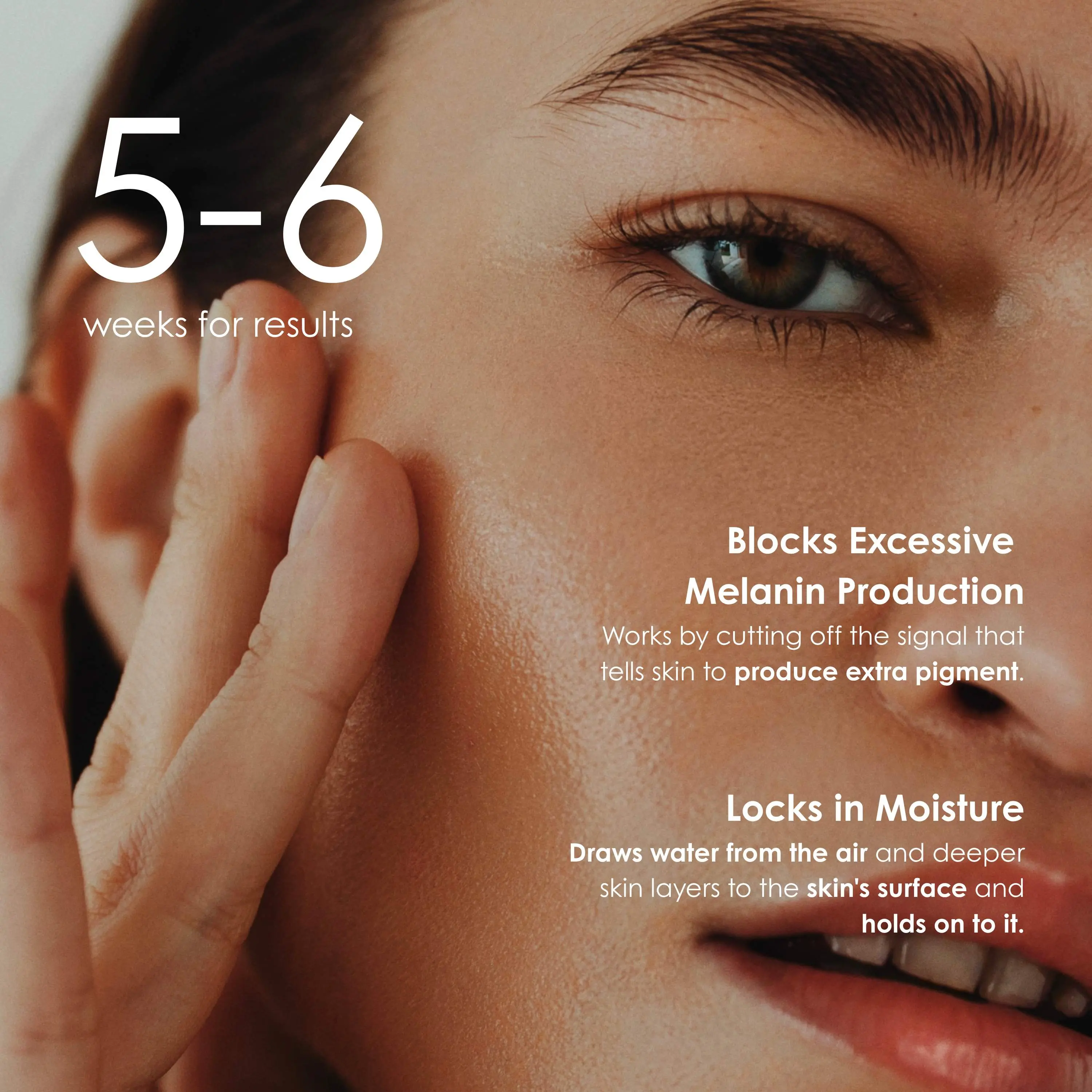 The formula features Tranexamic Acid, an effective ingredient known for its ability to improve skin tone by minimizing melanin production. This targeted approach helps to visibly reduce dark spots and discoloration, promoting a smoother, more even complexion. Its gentle yet effective action helps restore confidence in your skin’s natural beauty.