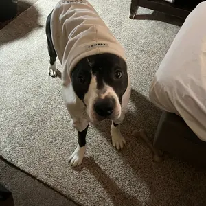 Absolutely loves his hoody𼰠since the day I put it on him he refuses to take it off. I am pitty mom, so I got the 3xl heâs a thicky đ¤ it fits perfectly but a bit snug on his big head so a 4xl would be betterâşď¸ good thing he hates things on his head lol. It even fits his harness, 10/10 recommendđĽ°