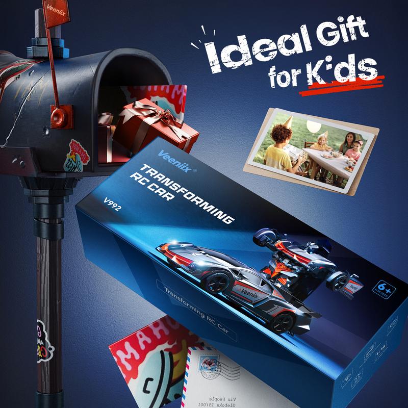 ·【𝗧𝗿𝗮𝗻𝘀𝗳𝗼𝗿𝗺 𝗮𝗻𝗱 𝗥𝗼𝗹𝗹 𝗢𝘂𝘁】Be amazed by the Veeniix V992 Transform Remote Control Car, a 2-in-1 robot toy car that brings endless fun and excitement to kids of all ages.