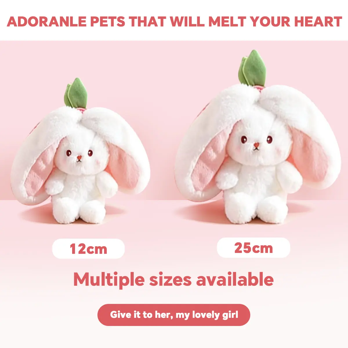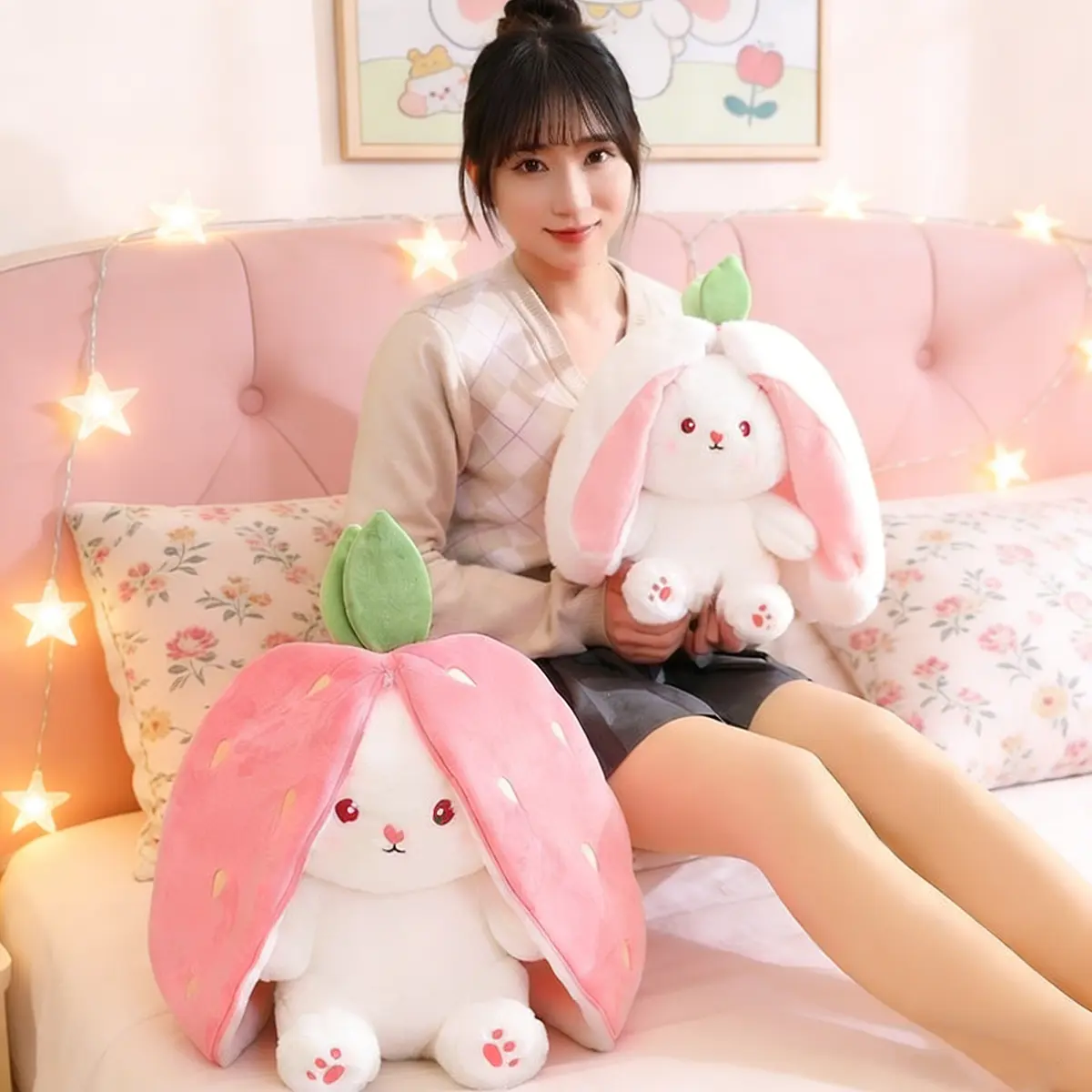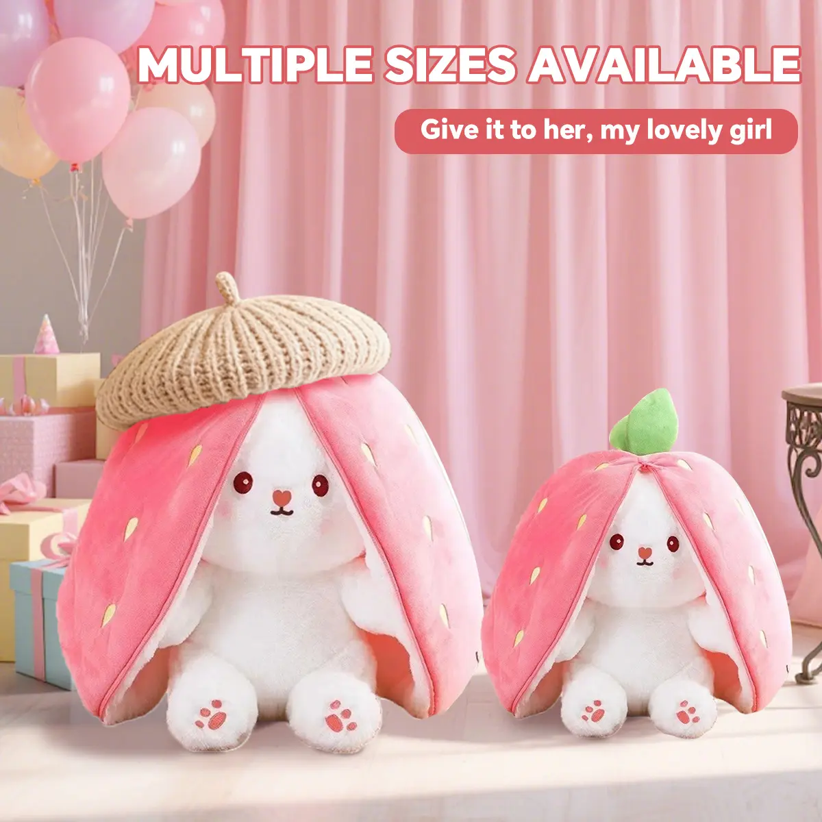 ·Changeable Design: This bunny plush transforms from a strawberry to a white rabbit by opening the zipper. Made with smooth, soft fabrics and recycled stuffing, it's perfect for babies. 🌸