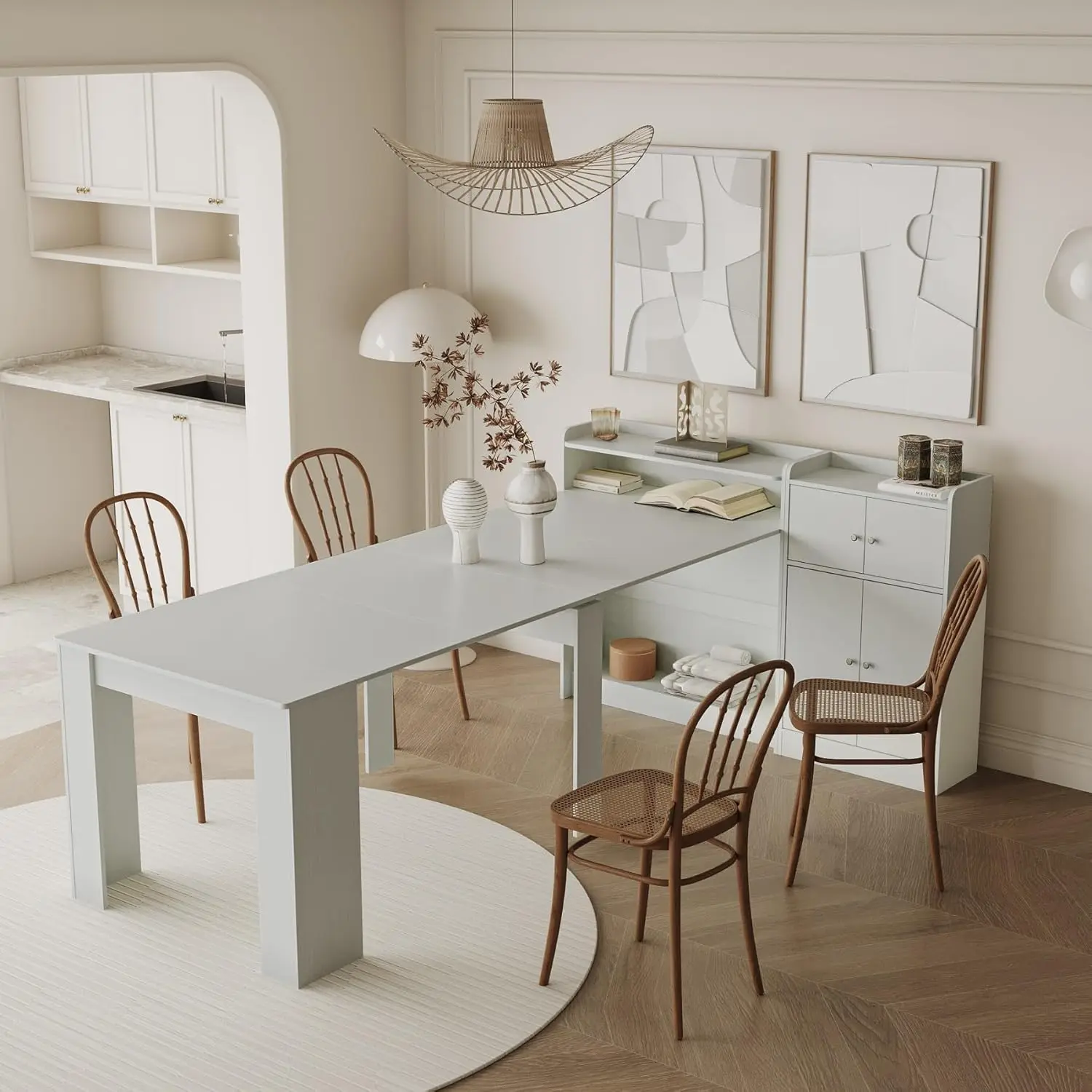 2. Perfect for Small Spaces & Modern Living: Designed for apartments, condos, and cozy dining areas. Its sleek white finish and clean lines blend with any decor, providing a full-size dining surface when needed and a stylish sideboard when not in use.