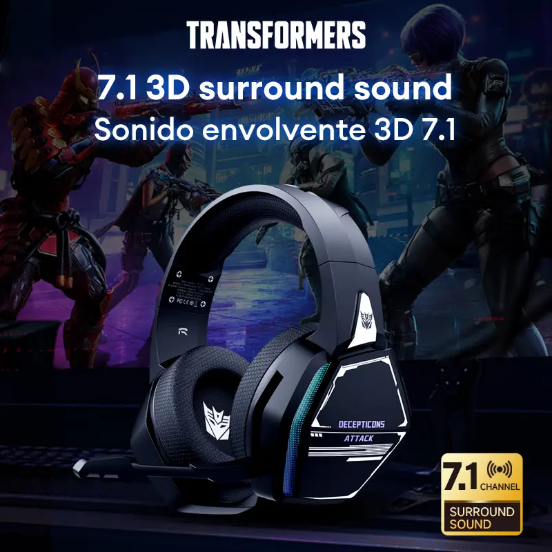 5. Transformers TF-G10 Wireless Gaming Headsets 2.4G+Bluetooth Compatible Headphones, High-Fidelity Surround 7.1 Audio Earphones with Noise Canceling Mic, Low Latency Gaming & Music Dual Mode