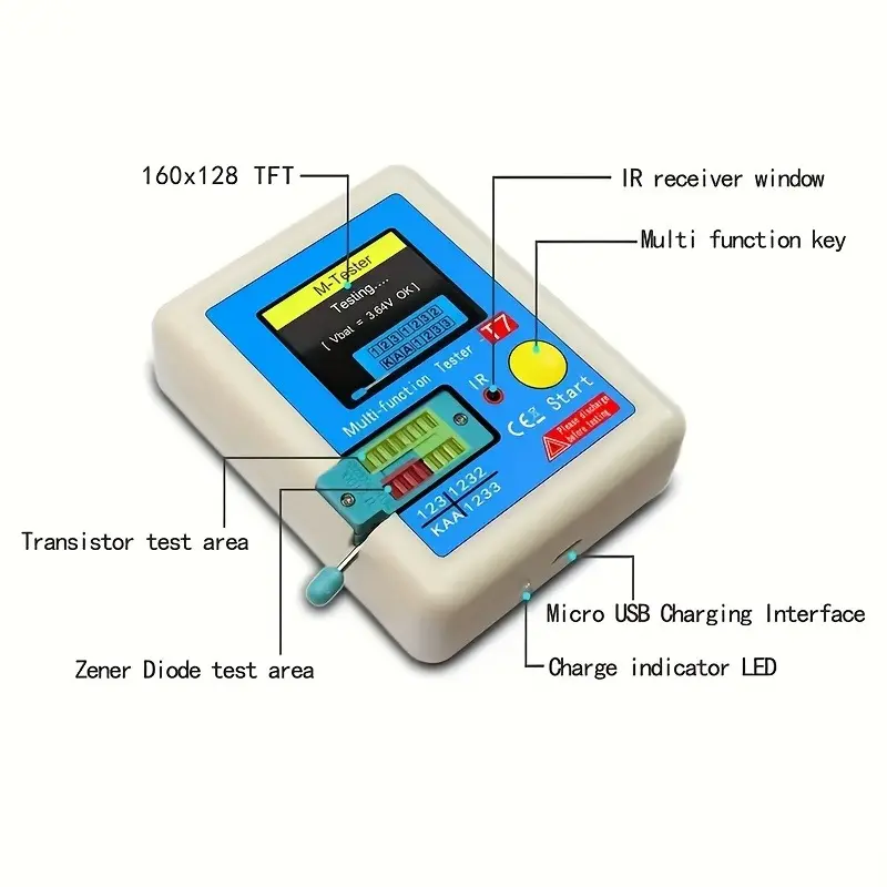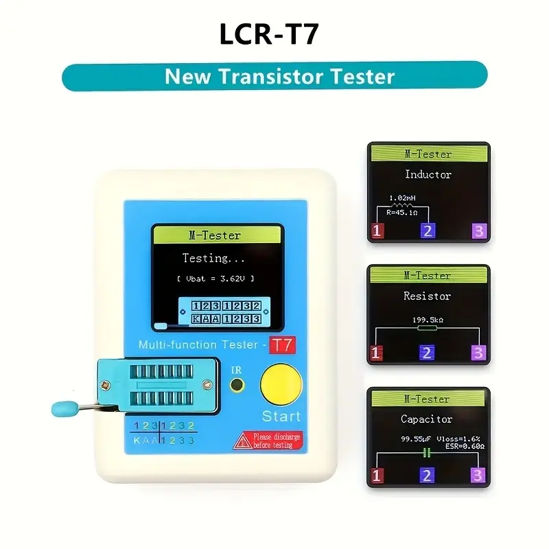 Transistor tester with true-color screen, one-button testing of MOS, diodes, capacitors, and ESR; multi-functional multimeter. A must-have tool for electronics engineers.