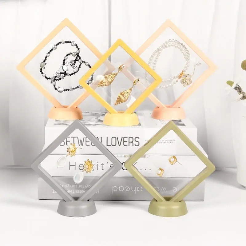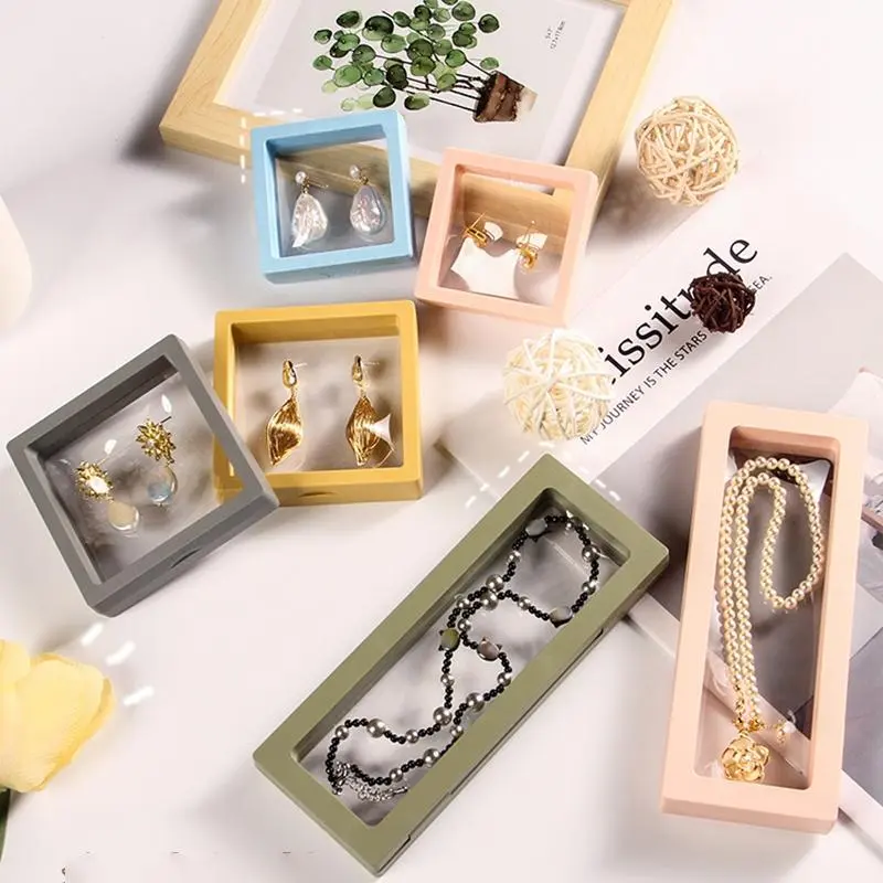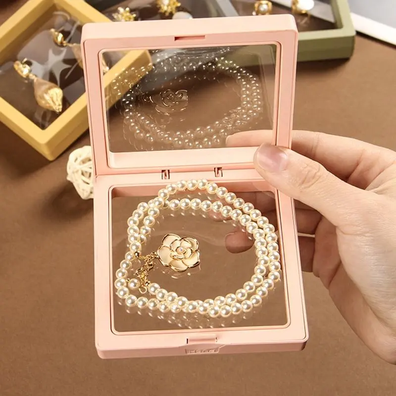3D Floating Display Box, Dustproof Jewelry Packaging, Transparent Hanging Storage Box for Storing Necklaces, Bracelets, Rings, Coins, Earrings, and Pins, with Elastic Film, Gift Box for Retail and Personal Use.