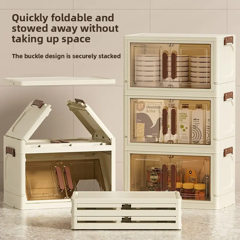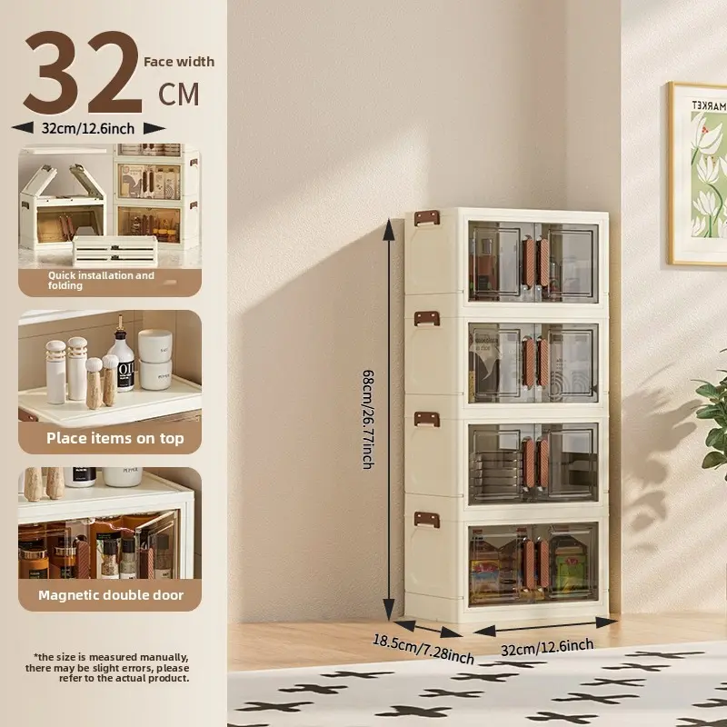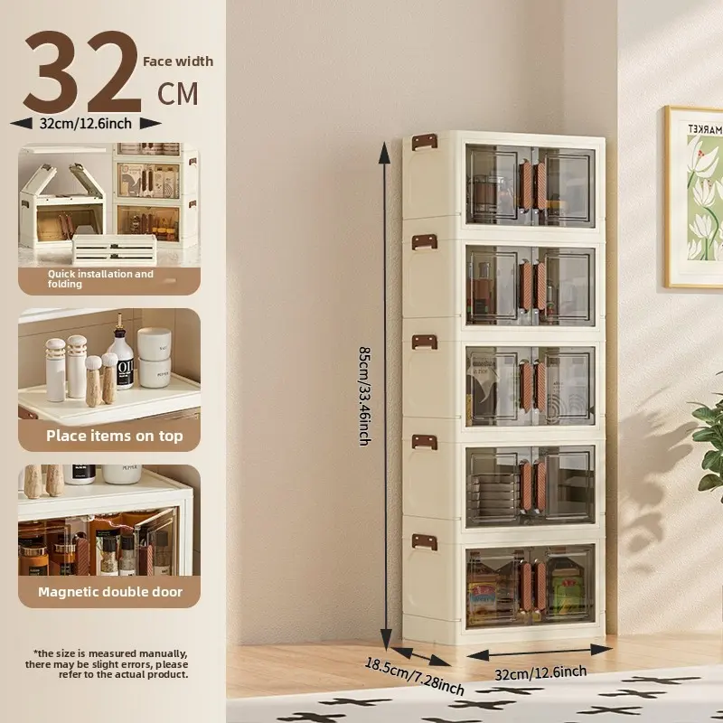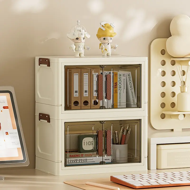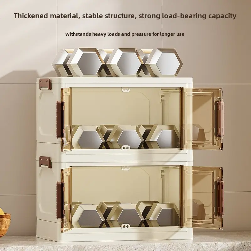 4/5/6 layer hot sale folding storage cabinet transparent black multi-layer with cabinet door locker toy snack finishing box bookshelf wardrobe Storage Drawer