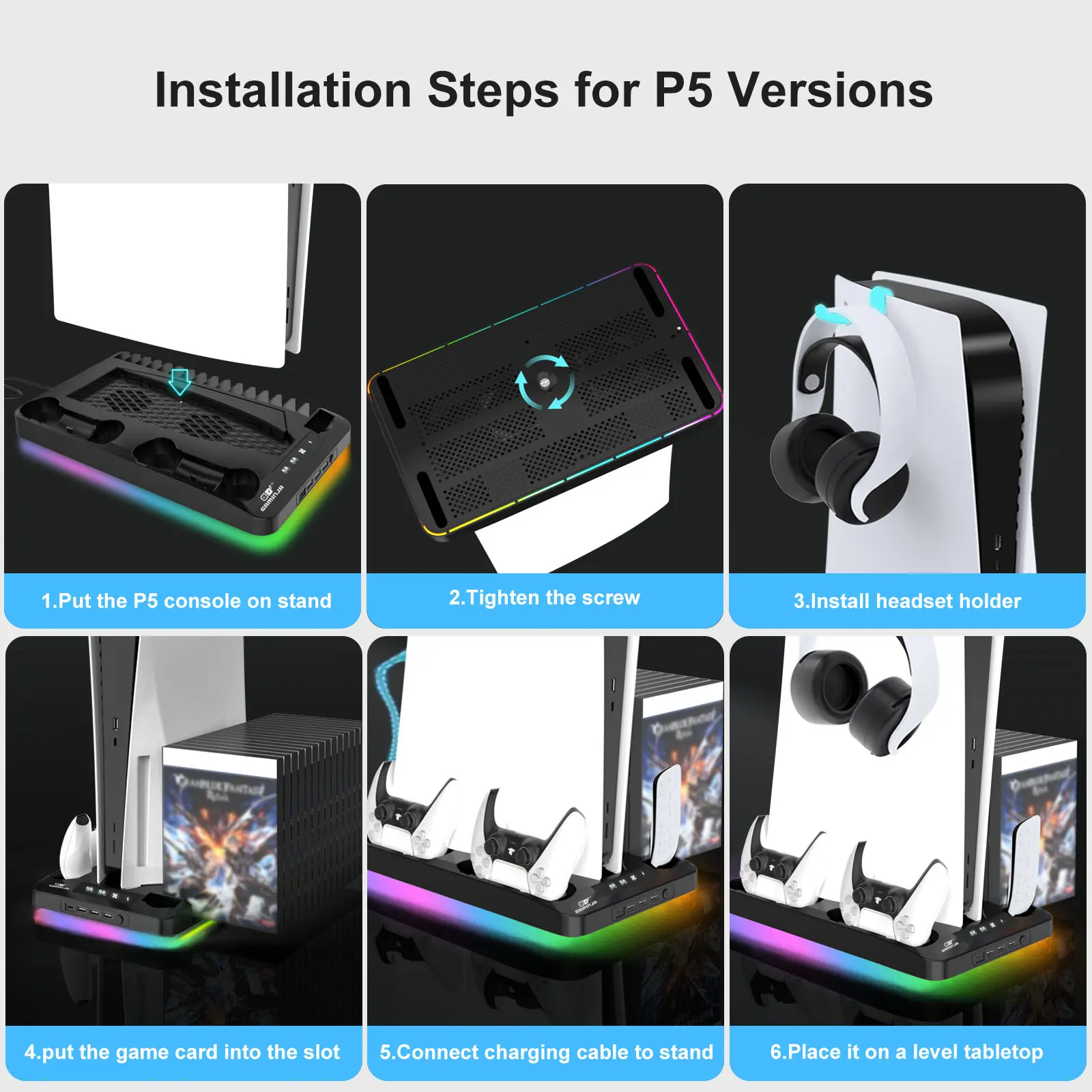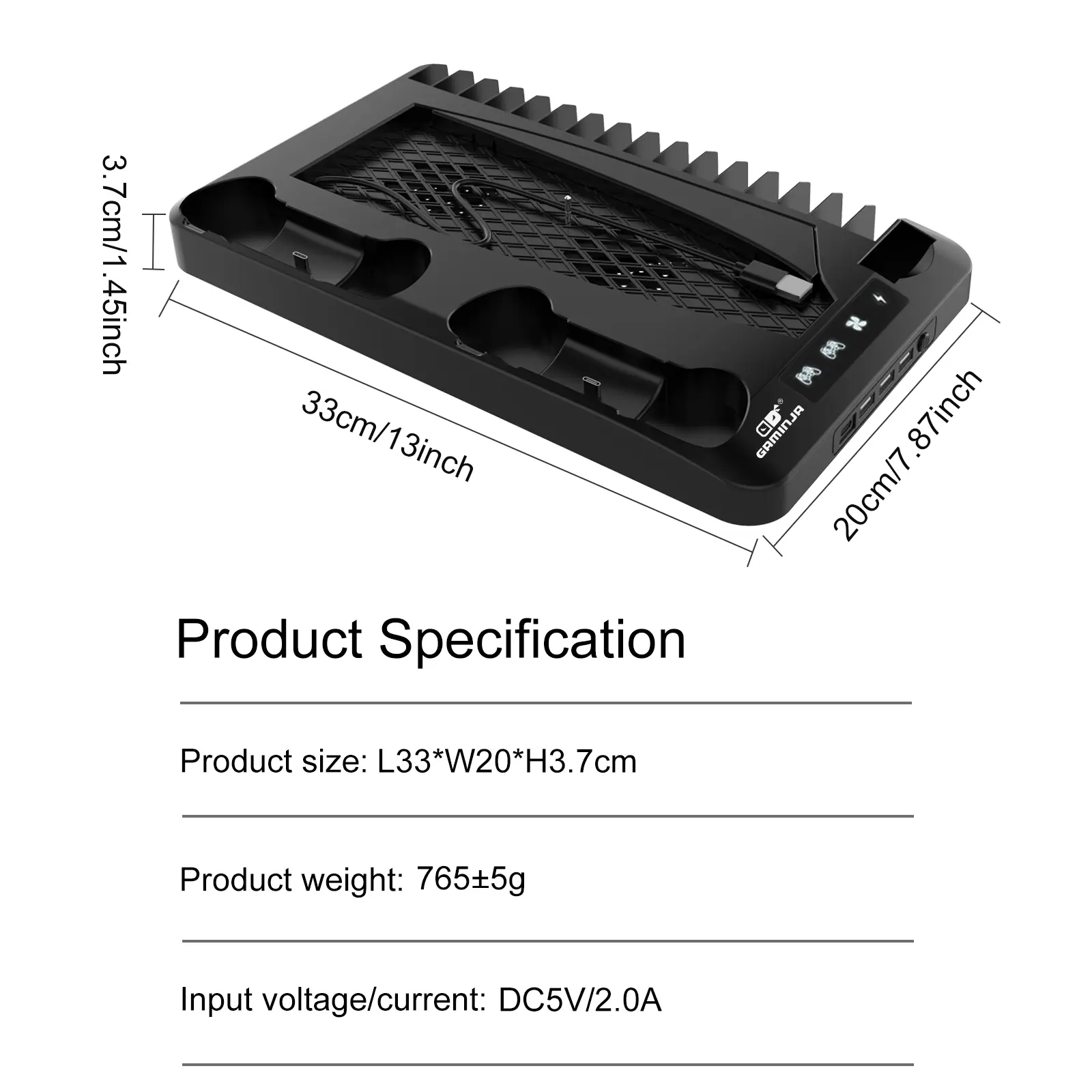 【Multifunctional Hub】 : This charging base for PS5integrates a cooling fan, dual controller charger, andvertical stand, optimizing your gaming setup. 【Effective Cooling】 : Keeps your PS5 console cool witha high-efficiency vertical cooling system, preventingoverheating during extended gaming sessions.