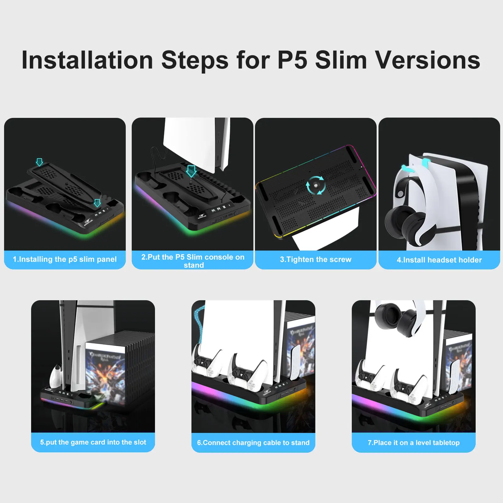 YLW GAMINJA Transparent Charging Cooling Station And Stand For PS5 Slim Console Controller Fast Charger Charging Dock Accessories