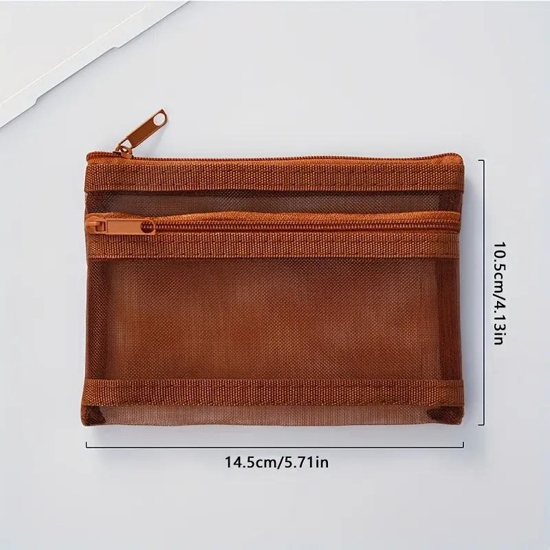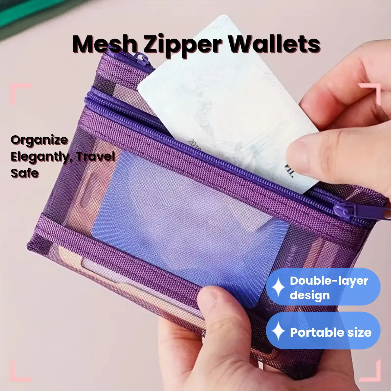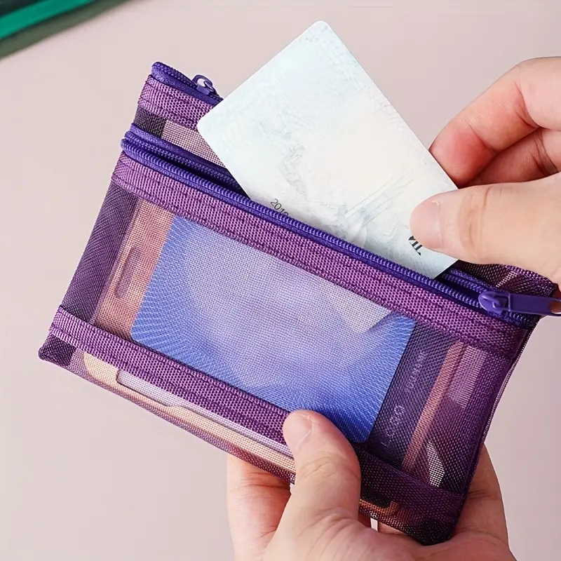 2/5pcs Transparent Double-layer Storage Pouch, Double-layer Vintage-colored Mesh Pouch, Can Be Used as a Coin Purse, ID Card and Business Card Holder, Also Suitable for Storing Small Items and as a Trinket Pouch. Essential for Travel, Card Organizer