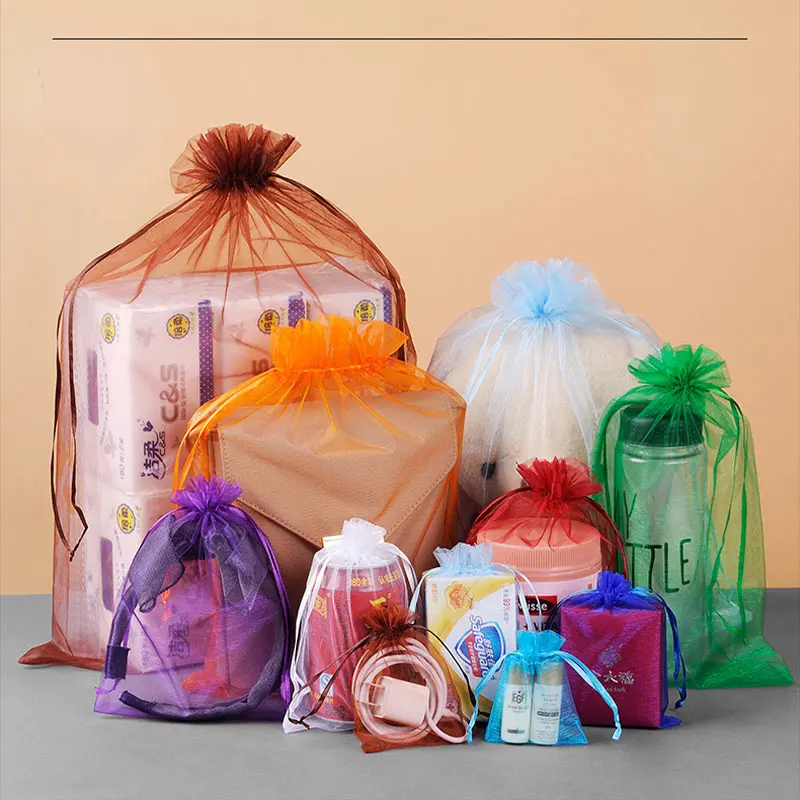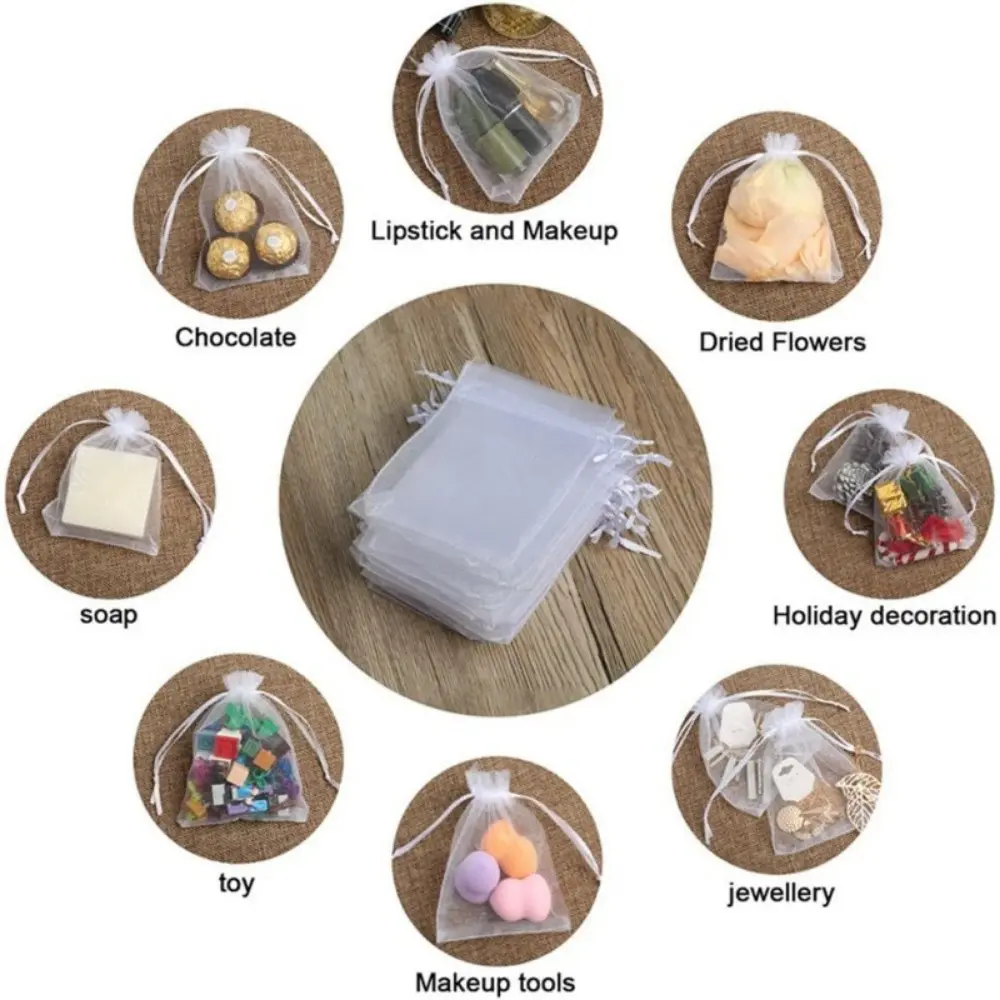 50pcs Transparent Gift Bags with Drawstring, High-Quality Organza Candy Bags, Wedding Decorations, Jewelry Packaging, Christmas Party Supplies, Gift Wrapping Supplies