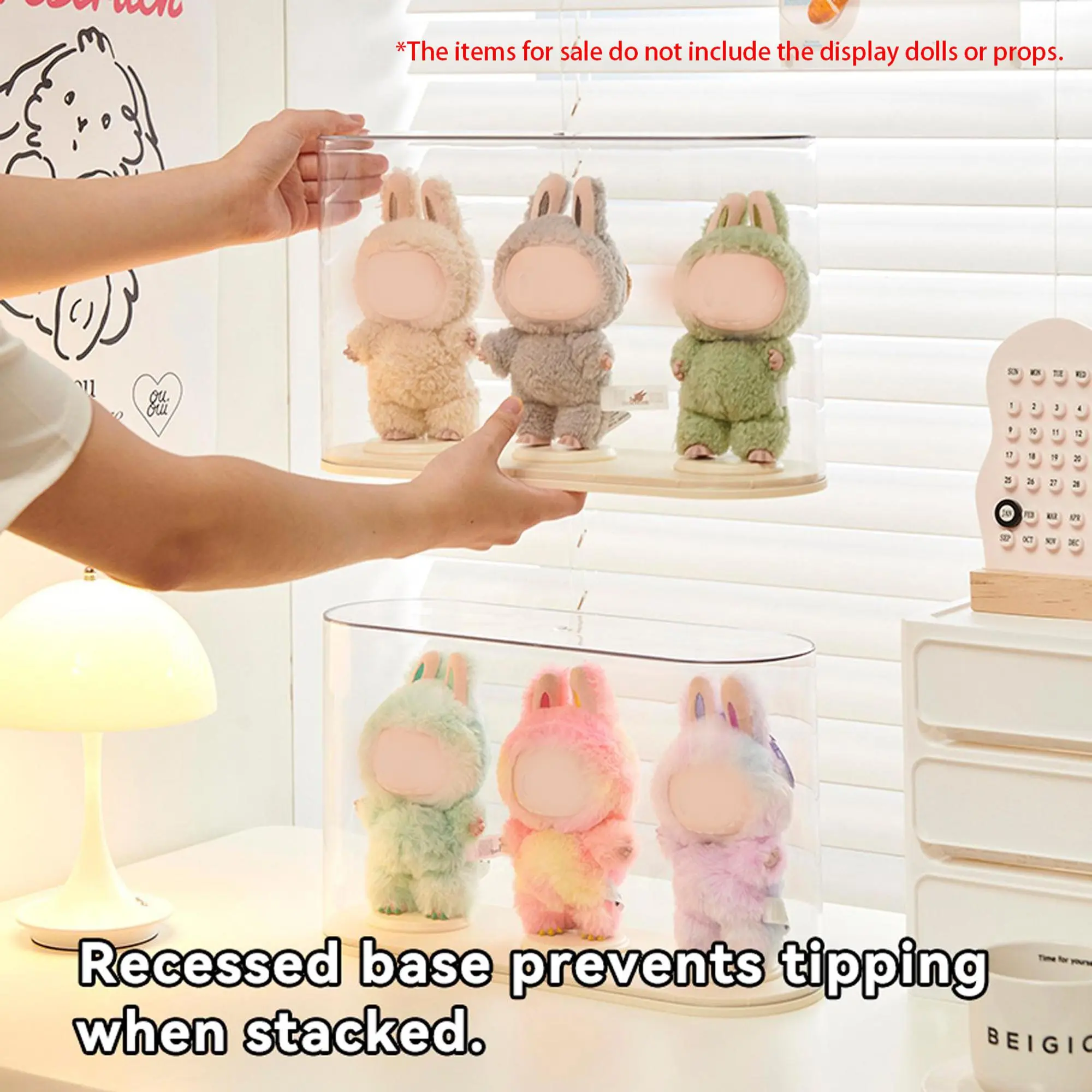 I need a zillion of these, I adore them! They hold 2-3 figures (POPMART, various IPs) depending on their width. I have two baby Molly figs in mine, both have extra parts (tabby kitten, hamsters) to accommodate. They are great quality!