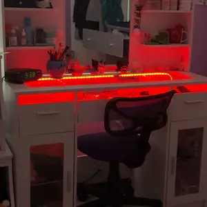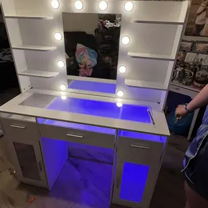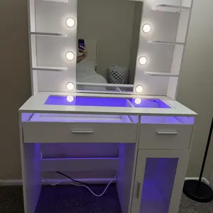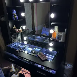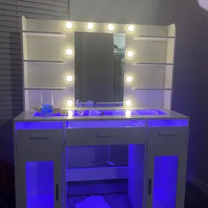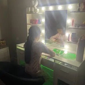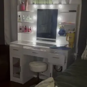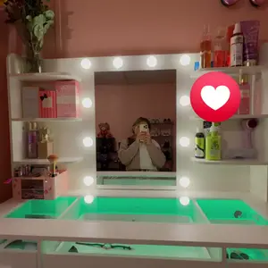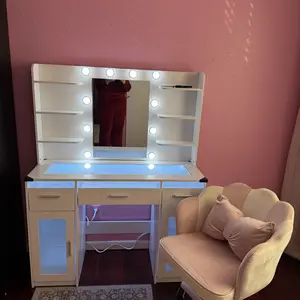 ·Vanity with Lights Hollywood Bulb: The makeup vanity desk is equipped with 10 hidden-line designed Hollywood bulbs. You can adjust the lighting to 3 colors or 3 brightness according to different scenes and makeup needs by pressing the button