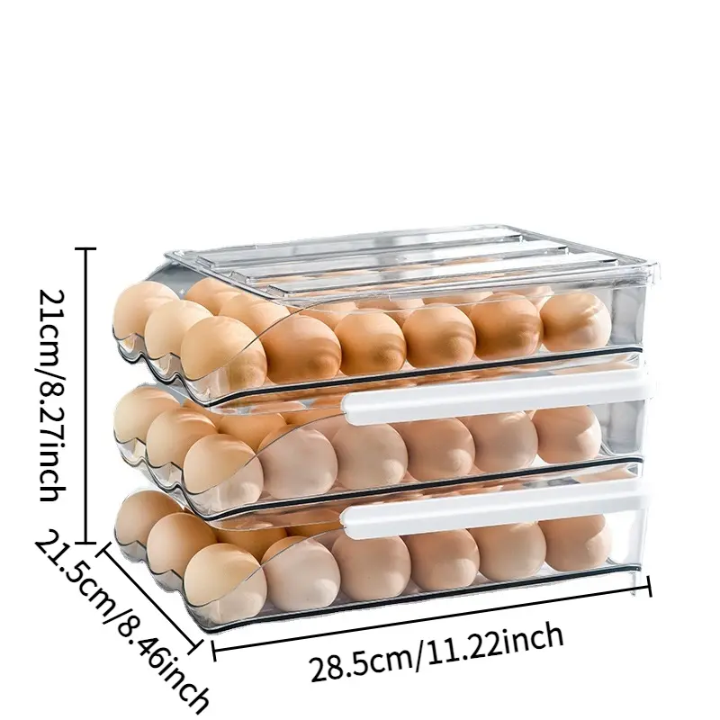 Transparent Multi-Layer Egg Storage Box, Refrigerator Slide-Type Egg Roller, Fresh-Keeper Design, Ideal for Organized Kitchen Use, Refrigerator Egg Organizer