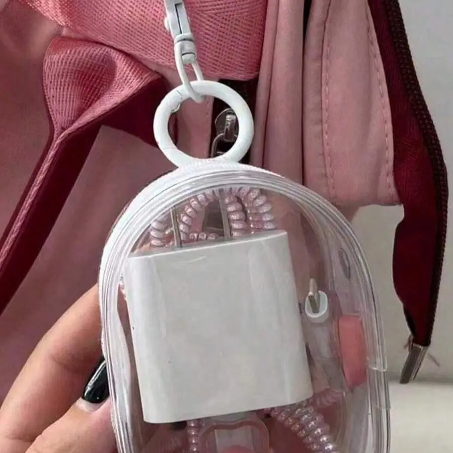 Transparent Multi-Purpose Data Cable Storage Bag, Portable Hook Design for Headphones, Ideal for Travel, 1 Piece