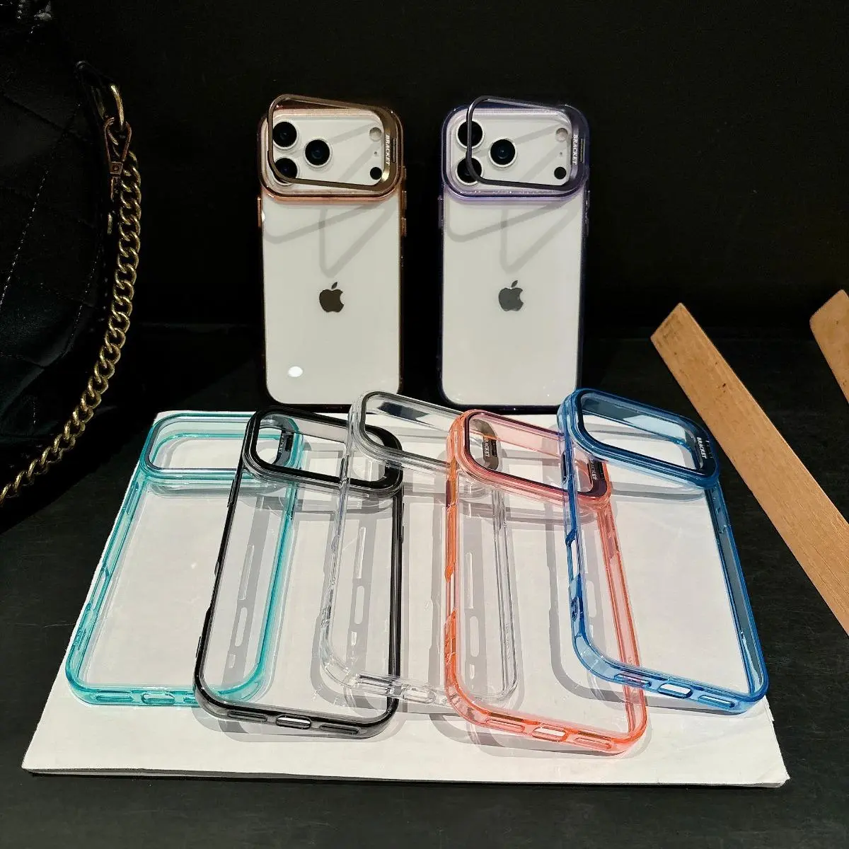 Transparent Hard Shell Phone Case for IPhone 17 Air 16 15 Plus 14 13 12 Pro Max Metal Holder Shockproof Protective Cover