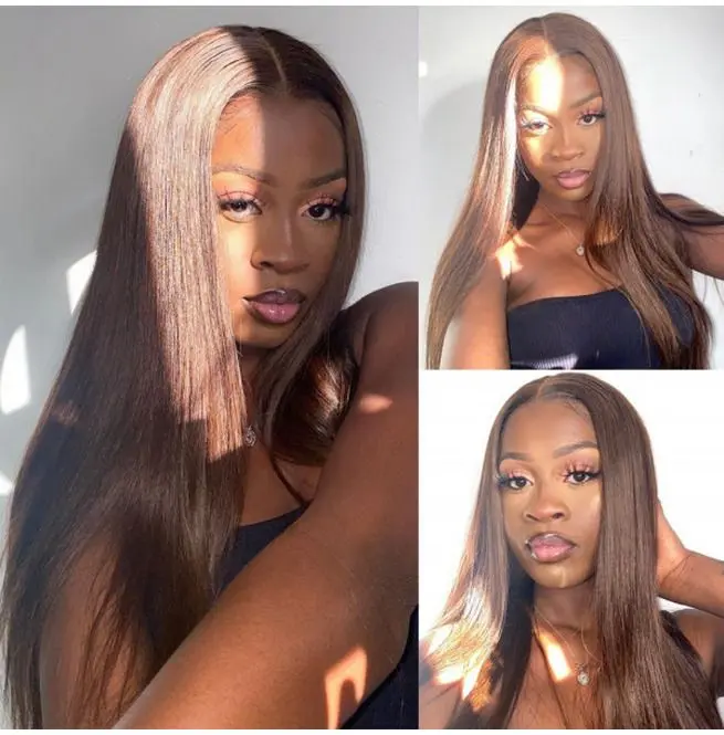 Hair looking:180 Density hd transparent lace front wigs human hair,Straight Orange Brown Wig lace frontal wigs human hair
