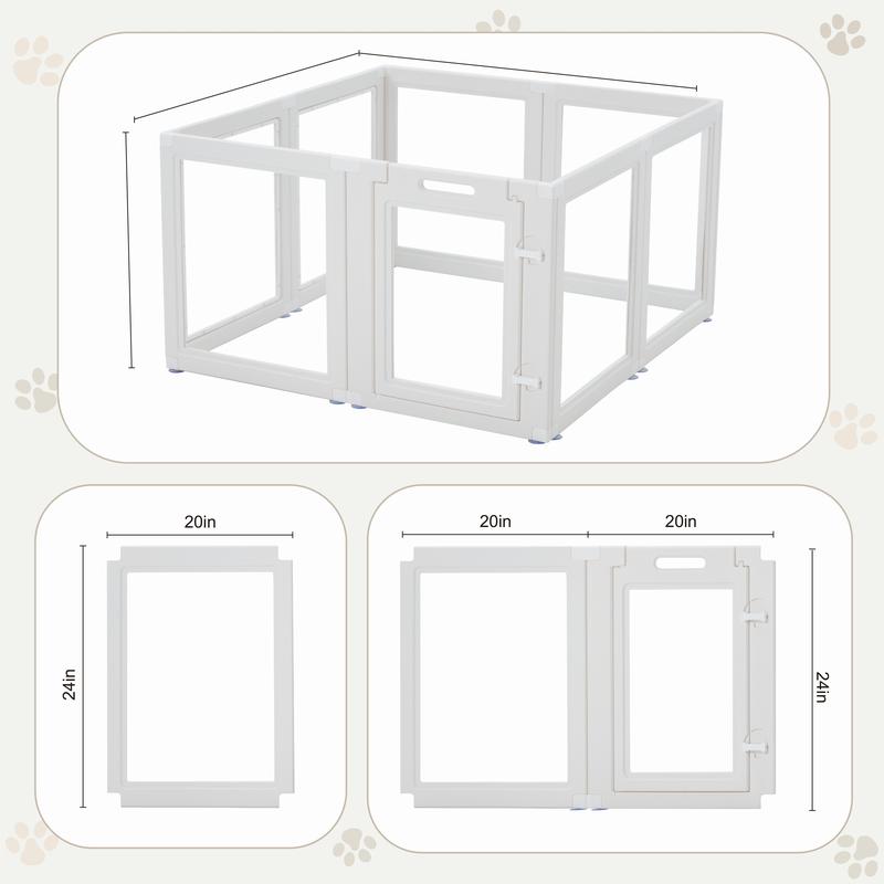 5. Transparent Pet Playpen, 8/12/16-Panel Pet fence with Door, Indoor Dog Pen, 41*41*24/61*61*24, Foldable, White