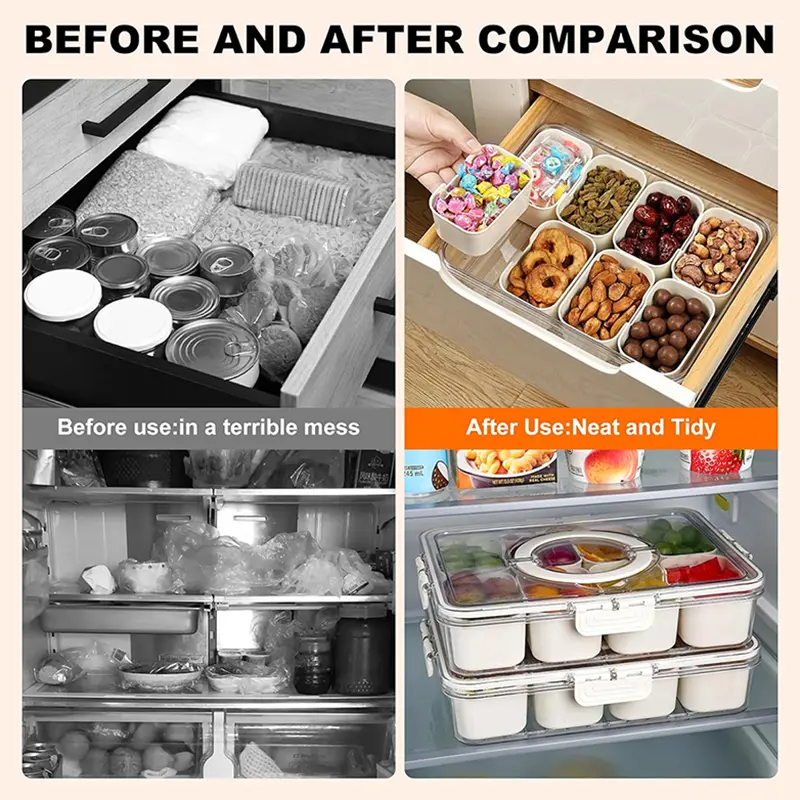 This transparent refrigerator storage box keeps food neatly classified and fresh. With an airtight seal, stackable design, and versatile structure, it is perfect for organizing fruits, vegetables, eggs, seasonings, snacks and more. Portable and durable, it works great in fridges, pantries, kitchens, travel and outdoor picnics — a must-have organizer for modern daily life.