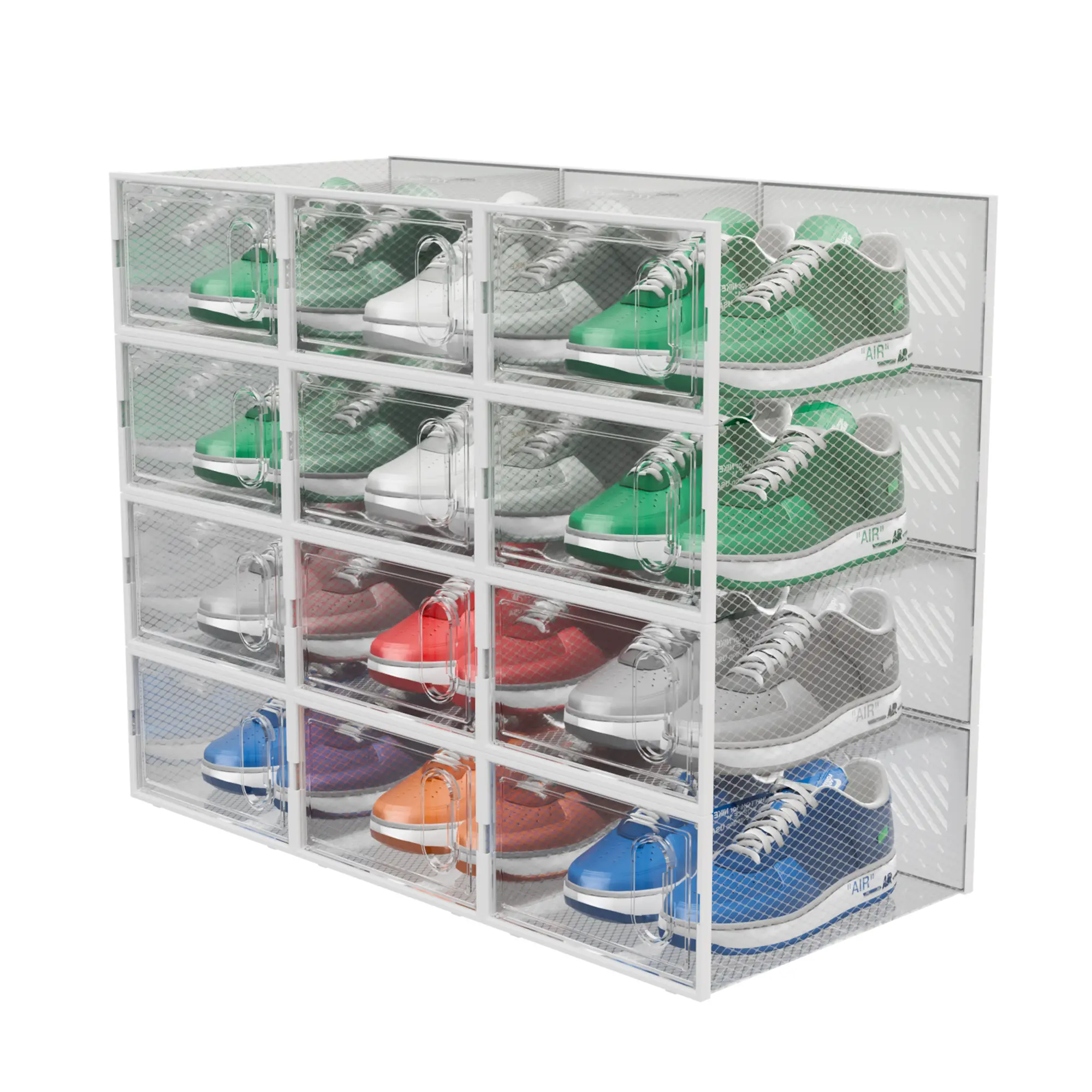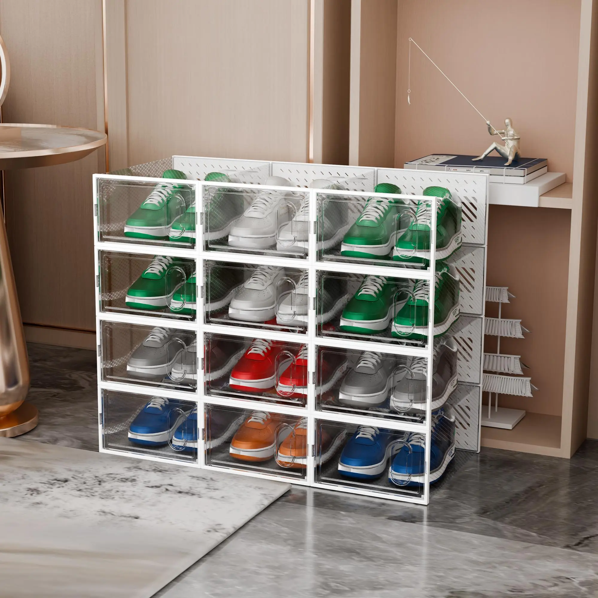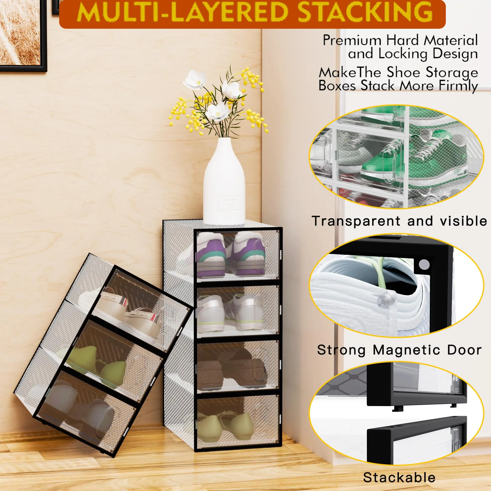 12pcs Transparent Shoe Box With Magnetic suction door, Stackable Clear Plastic Boxes For Closet, Sneakers, Space-Saving Storage Organizer for Multipurpose Use in Entryway, Bedroom, Home