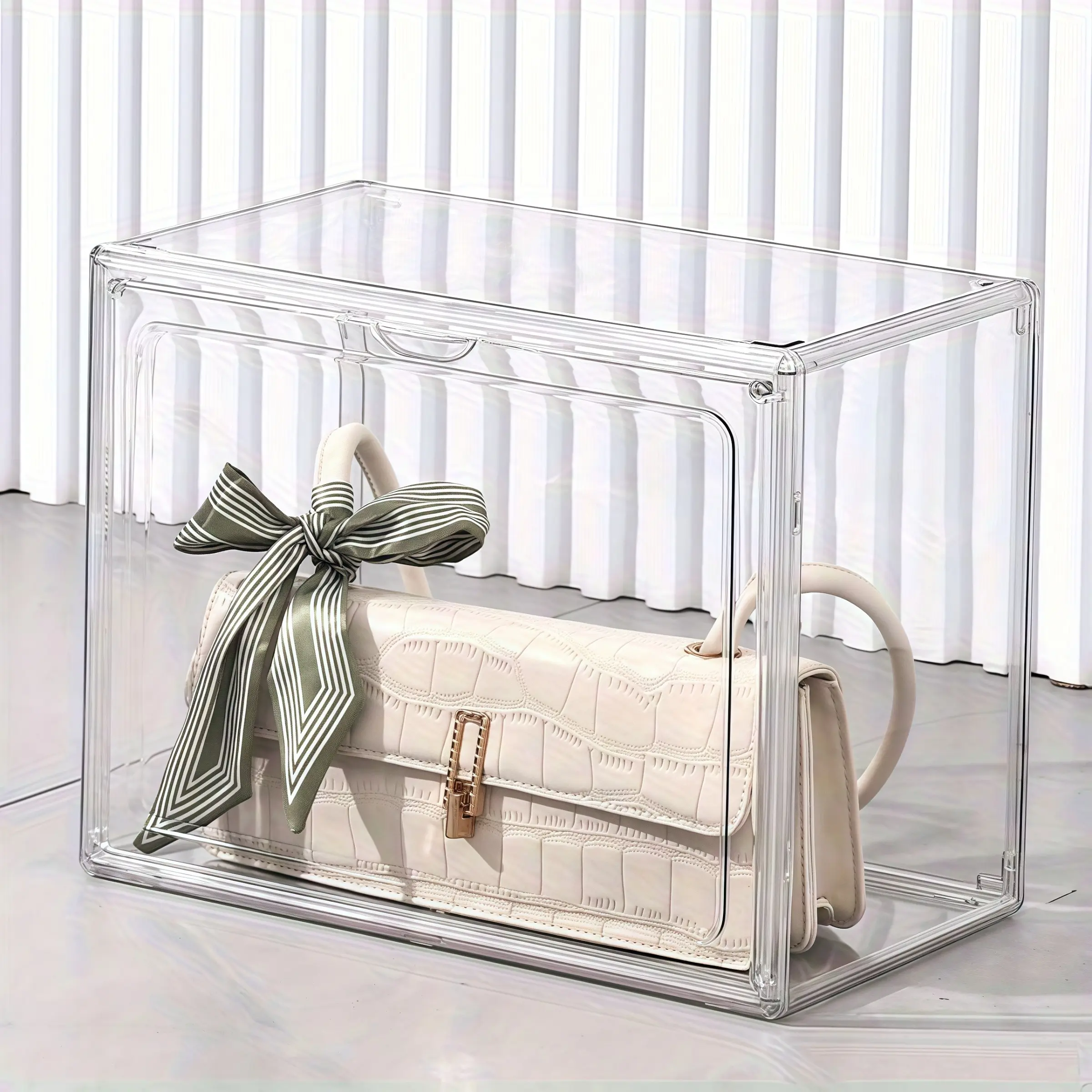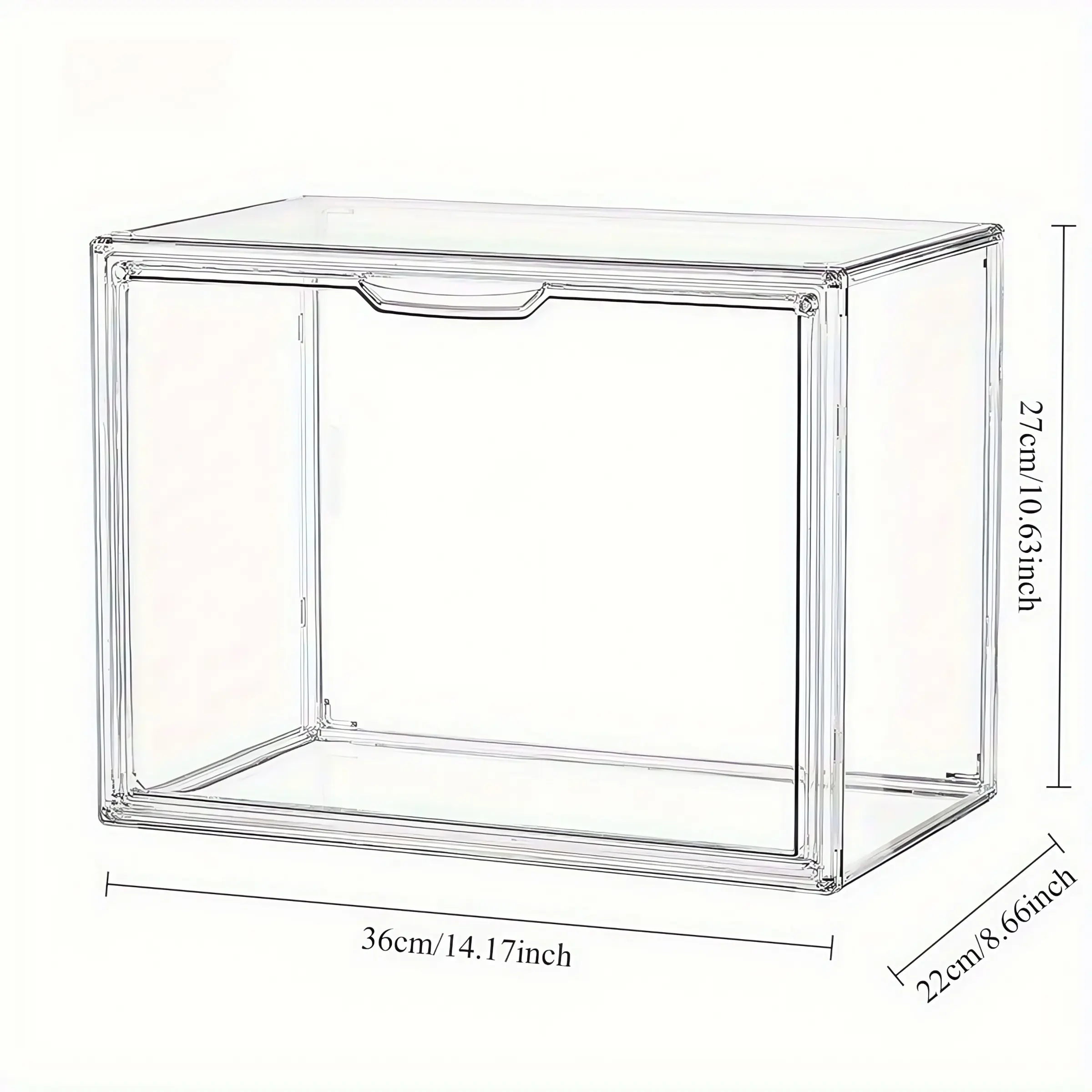 Transparent Stackable Plastic Display Storage Box, Dustproof Acrylic Organizer for Dolls, Books, Shoes, Bags, Skincare (36x27x23 Cm)
