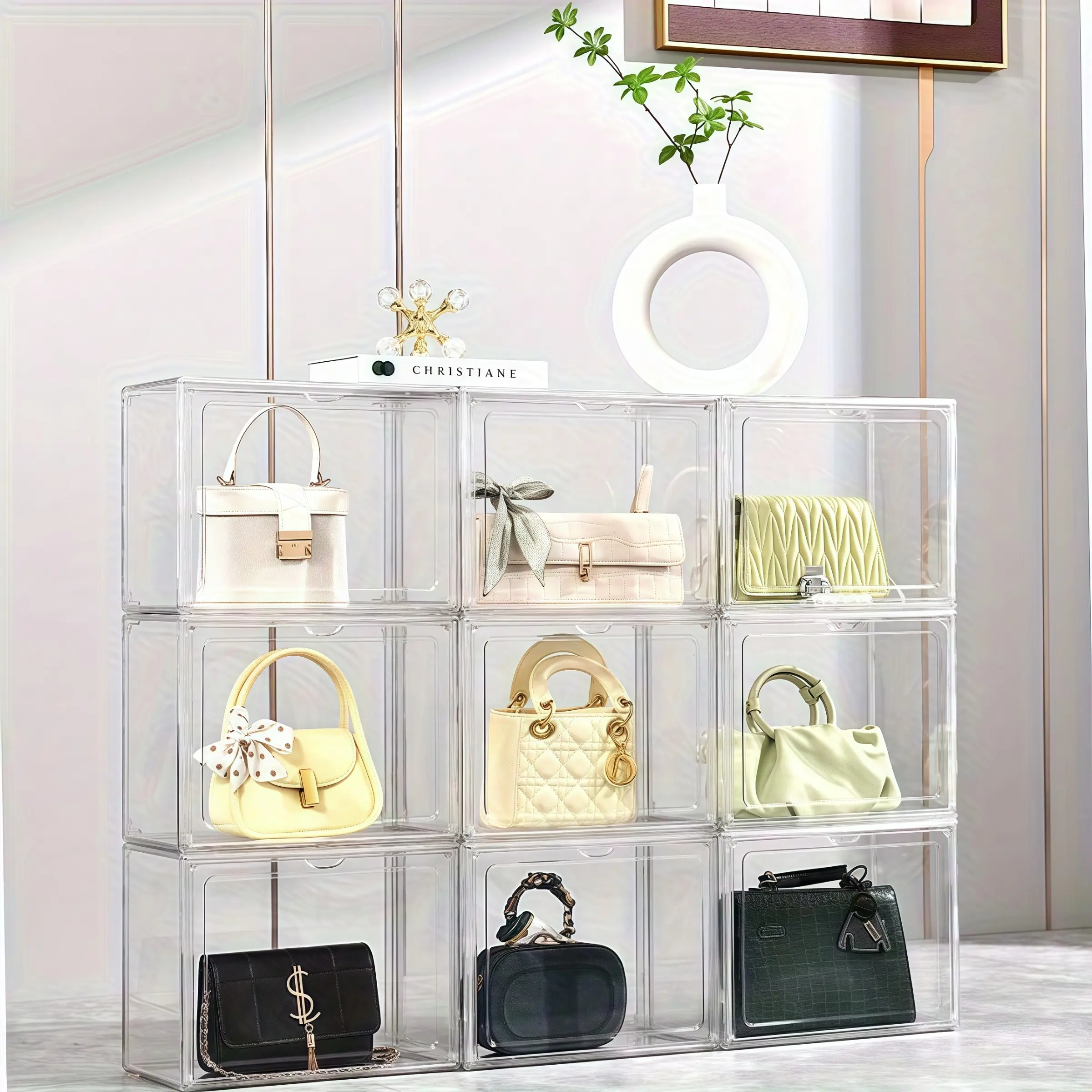 ✨Obsessed with a clean, organized space 🤍 These stackable display bins make everything look so put together, they keep your purses looking nice and dust free! ✨  #HomeOrganization #CleanVibes #fyp #tiktokshop #NovoDoveCabelos