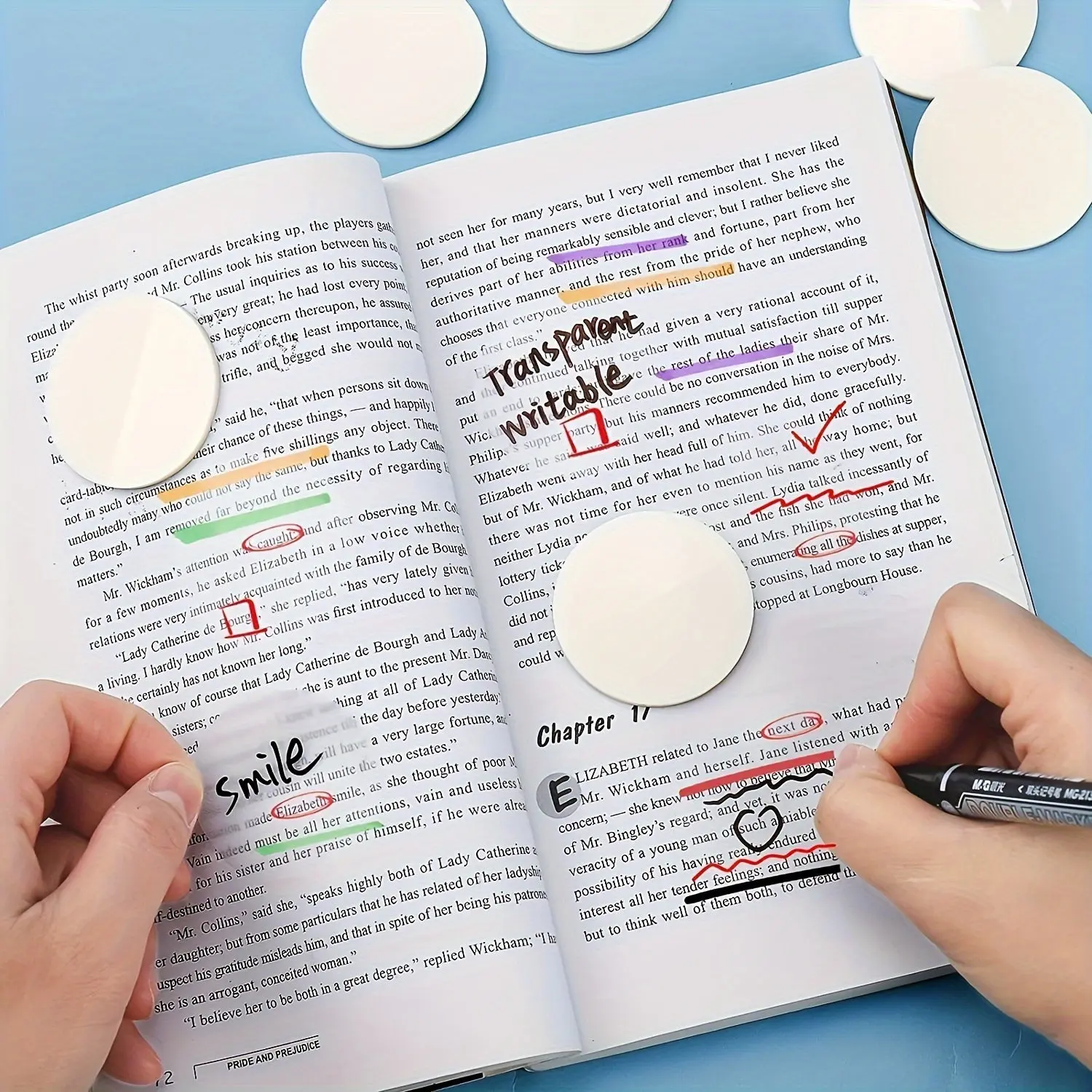 Revolutionize your note-taking with our 300 Pcs White Round Transparent Sticky Notes! These translucent tabs allow you to mark important text without obscuring the content. Perfect for office work, academic studying, book annotation, and Bible journaling. They provide a high-visibility, non-damaging way to highlight key information.